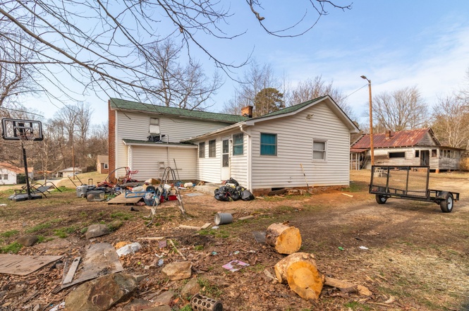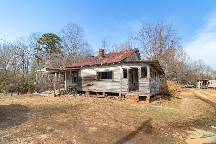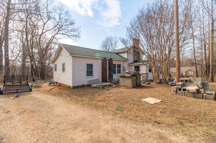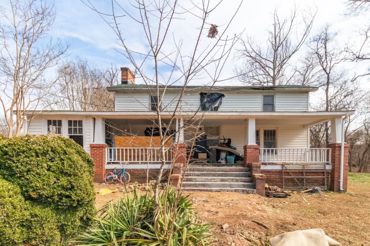 The listing says the house “has been vacant for more than 20 years and sustained fire damage to the rear section approximately 2-3 years ago. The interior has been cleared of debris, however entry is at buyer’s own risk. … According to the Town of Gibsonville Code Enforcement, the structure must be brought into compliance by 5/17/2026.”