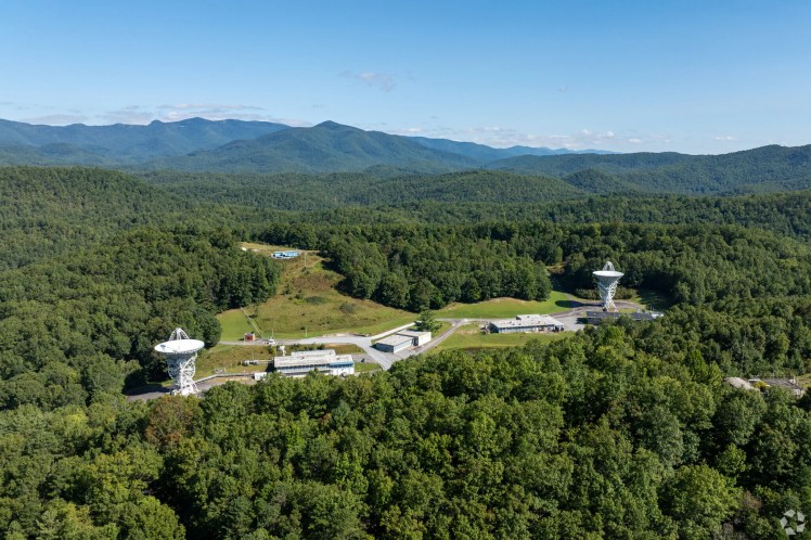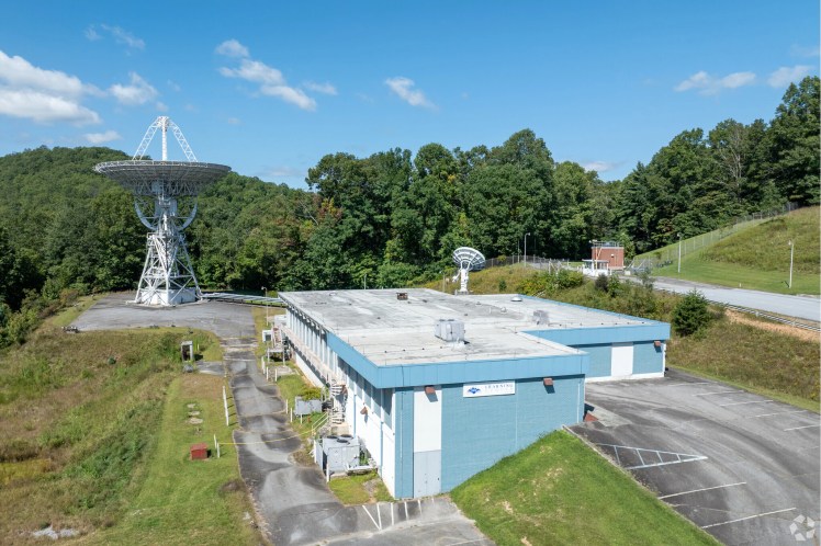 The property includes two 85-foot radio telescopes, more than 25 optical telescopes, research labs, guest cabins, a helipad, and a 200-person cafeteria and commercial kitchen capable of serving 500 meals per day.