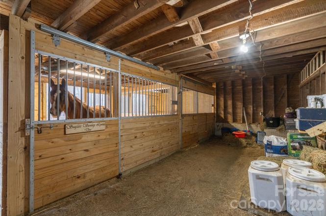 - Note: The property includes a two-stall barn, hay loft, storage and tack room, feed area, fencing and pastureland. The barn includes run-out paddocks off both stalls. The listing says a second building with heat and air conditioning could be used as a game room or overnight guest accommodation.