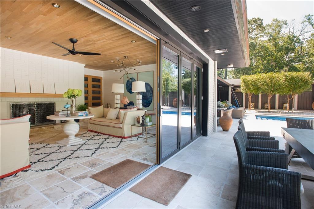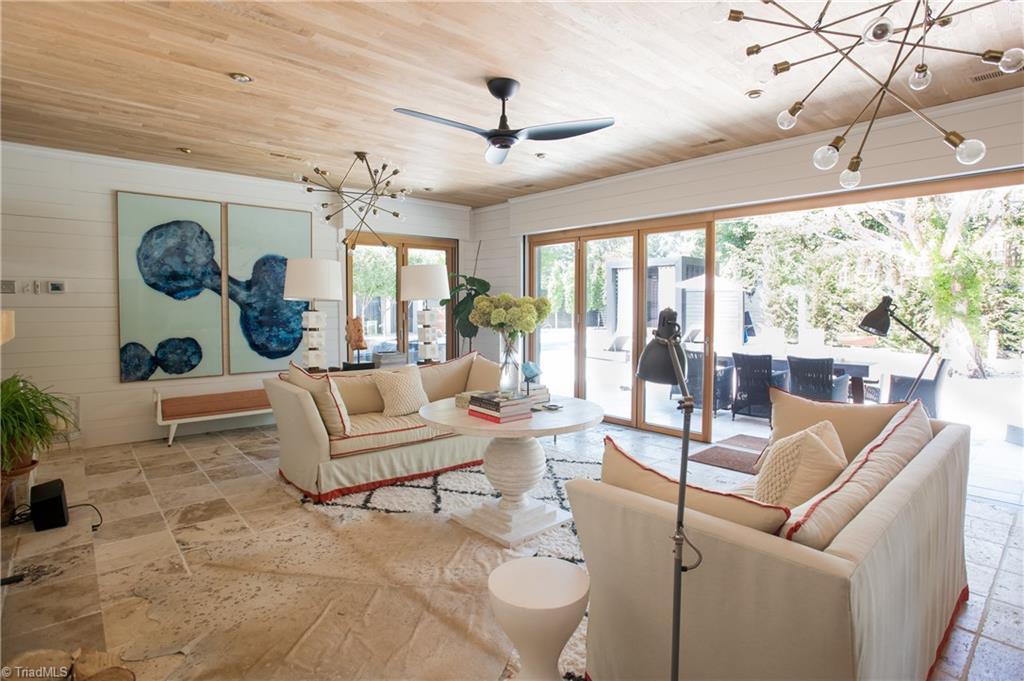 When Sloan and Geneva Gibson built their home in 1955, they were thinking modern all the way. The great room has bi-fold doors with motorized screens, opening the room to the outdoors. It was among the first homes in High Point with heat and air conditioning from an electric heat pump, NCModernist says.