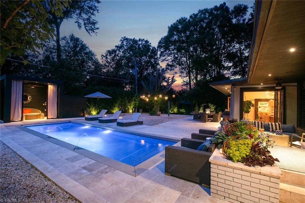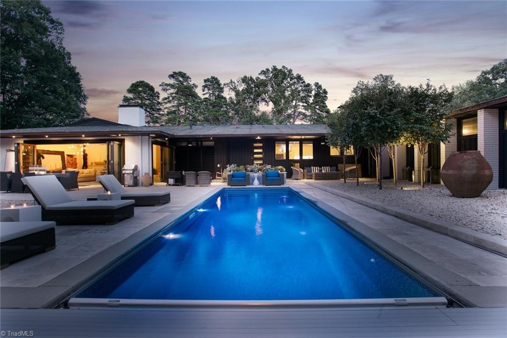 The house is at 412 Emerywood Drive, and it’s a glorious example of Mid-Century Modern design. It has four bedrooms and four bathrooms in 4,249 square feet. The back yard has an in-ground pool (it’s gorgeous, as the listing’s 13 pictures of it show). The lot is 0.63 acre. The price comes out to $182 per square foot, reasonable enough in High Point’s high-end Emerywood neighborhood.
