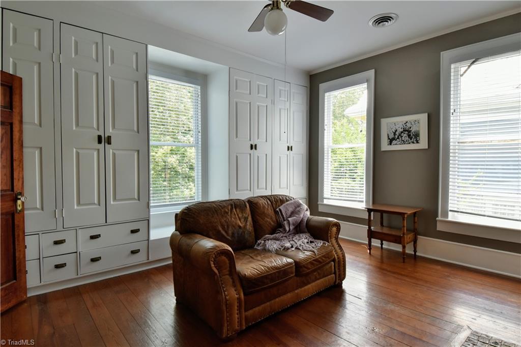 - “The present front porch features Tuscan columns and a slightly projecting pedimented entrance bay. However, the 1917 Sanborn Hap shows only a corner wrap-around porch. The porch was probably altered in the 1910s or 1920s, when the south side porch was converted to a sun room.