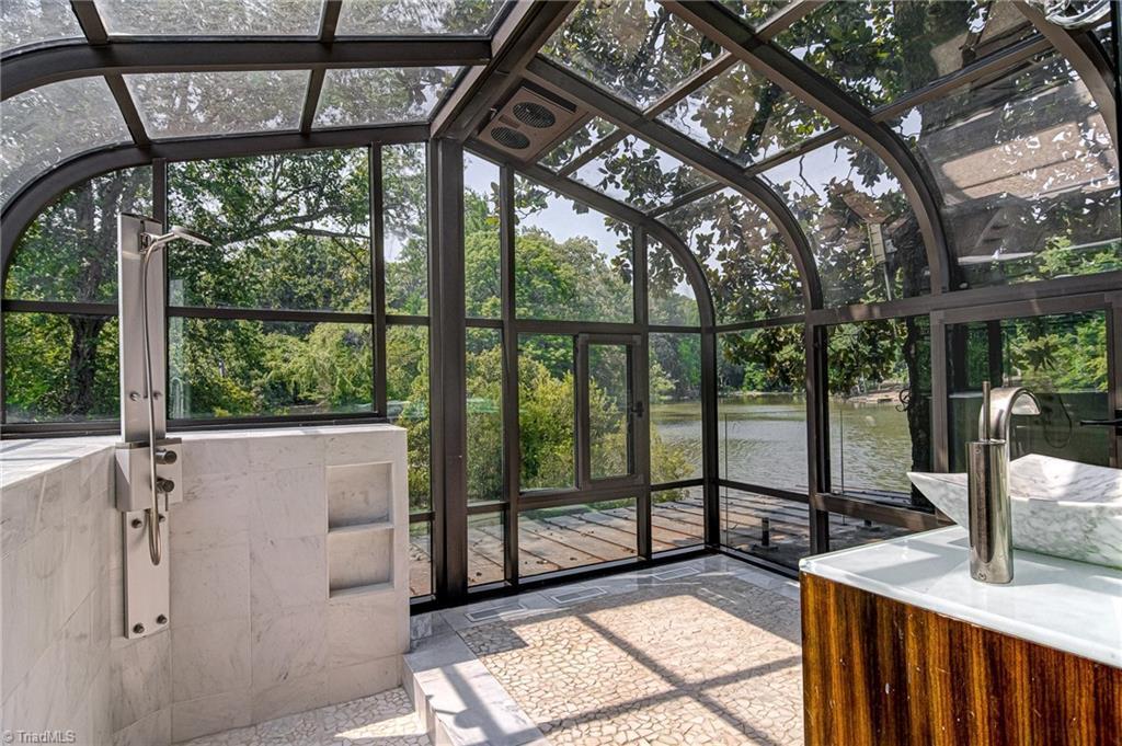 The house is at the west end of Lasater Lake, where Blanket Creek runs down to the nearby Yadkin River. The exterior and the interior are spectacular. I’d love to know what Northup and O’Brien would say about how the house has been updated. If those bathrooms wouldn’t blow their minds, nothing would.