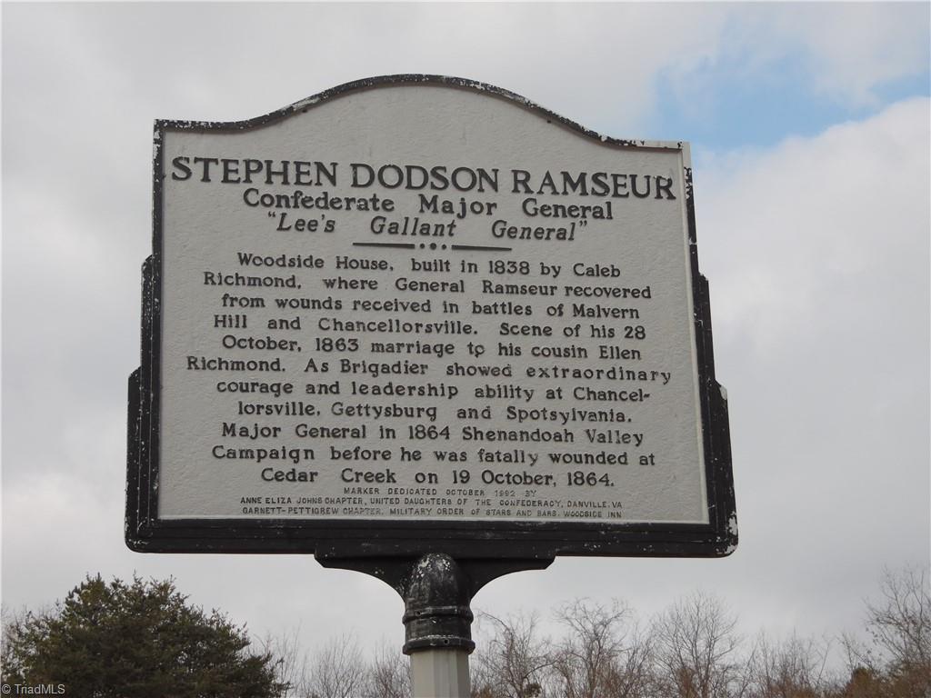 - “It was at Woodside that the Confederate officer (later general) Dodson Ramseur met, courted and married (1863) Ellen Richmond, daughter of Caleb.” Dodson and the soon-to-be-widowed Ellen were cousins.
