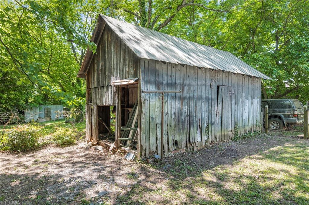 The property includes a dilapidated barn and a two-car garage with at least one broken window.