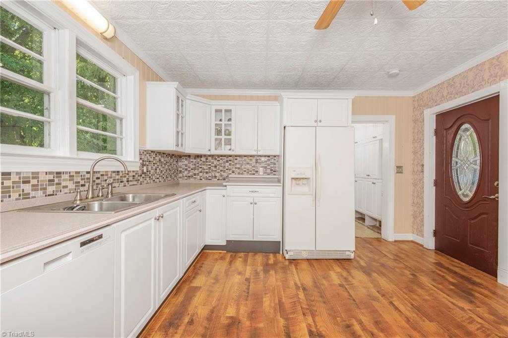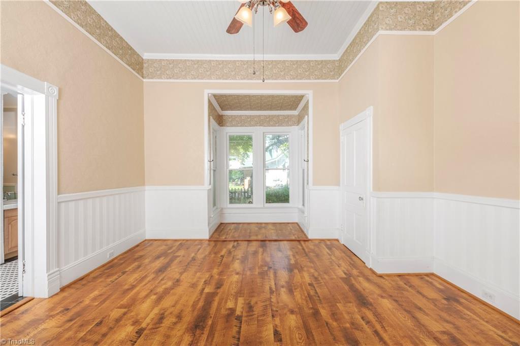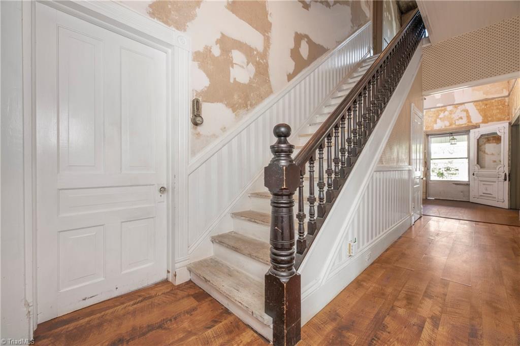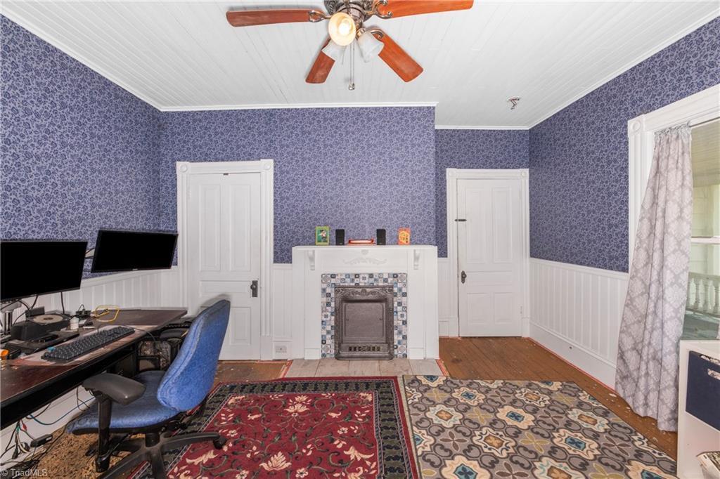 1402 Waughtown Street has three bedrooms and two-and-a-half bathrooms in 3,173 square feet. The lot is 0.34 acre (the listing’s figures vary a bit from these, which are from county records). The price comes out to $60 per square foot, which appears reasonable for a restoration project like this (provided there are no structural or mechanical surprises).