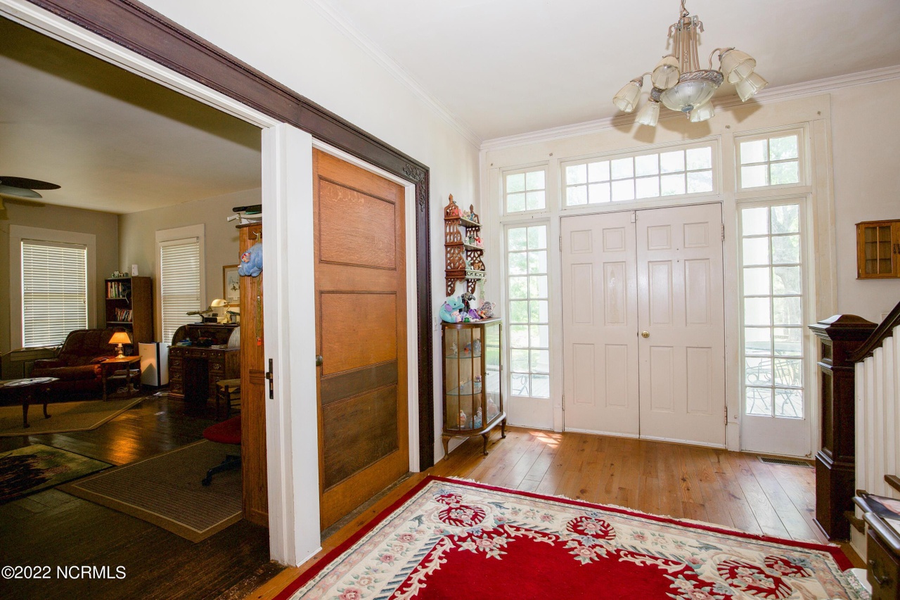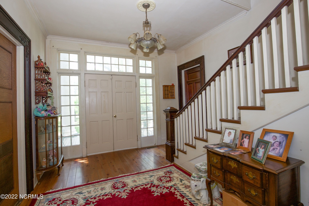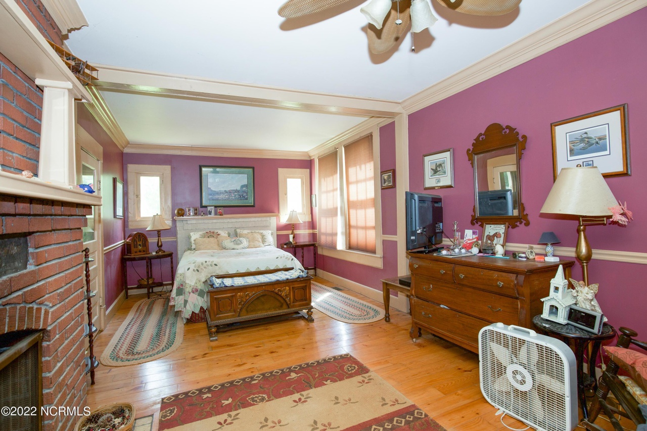 Built in 1802, it’s a Classical Revival mansion with four monumental columns out front. It has four bedrooms and two-and-a-half bathrooms (one with a fireplace in what must have originally been a bedroom) in 4,330 square feet (per county records; the listing shows 4,800). That divides out to a very modest $81 per square foot. The once-sprawling grounds have been reduced to a manageable 10 acres. The property is a few miles east of Mount Gilead in the Uwharrie National Forest. The address is 2989 Thickety Creek Road.