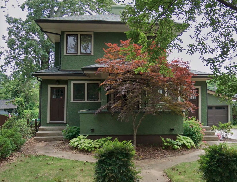 - District NR nomination: “The only example of Prairie-style architecture in the district”
