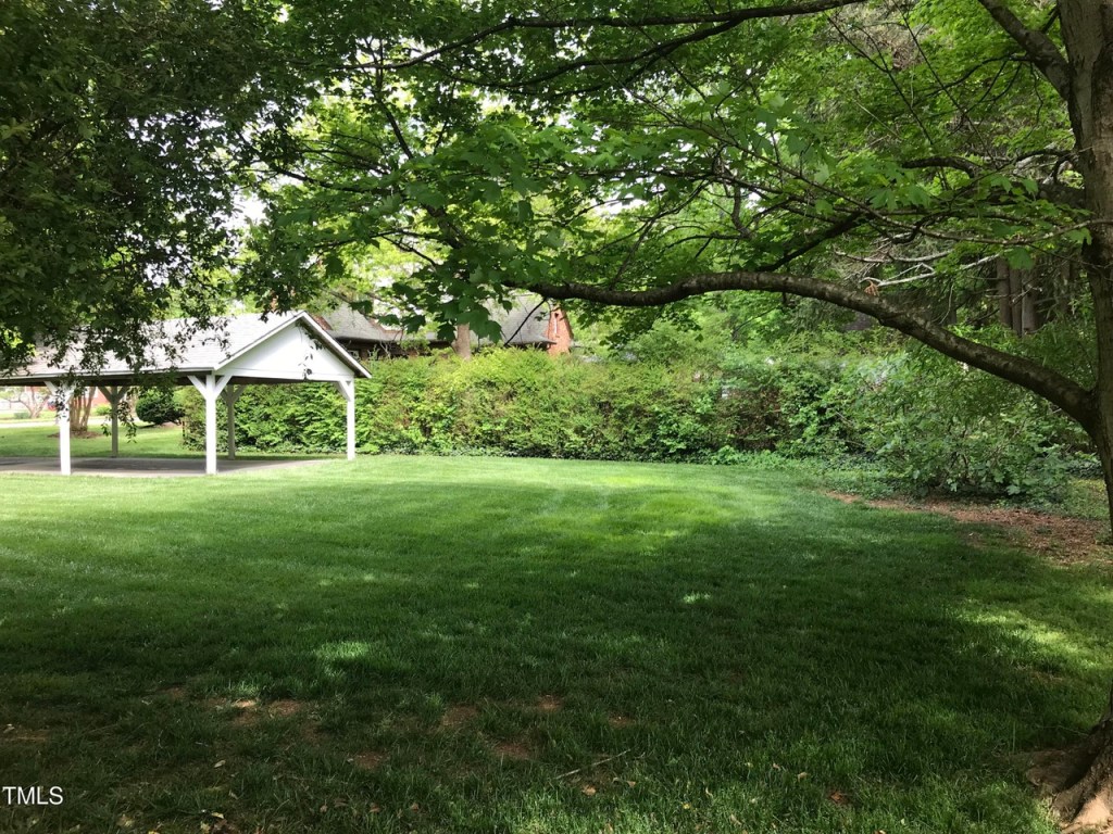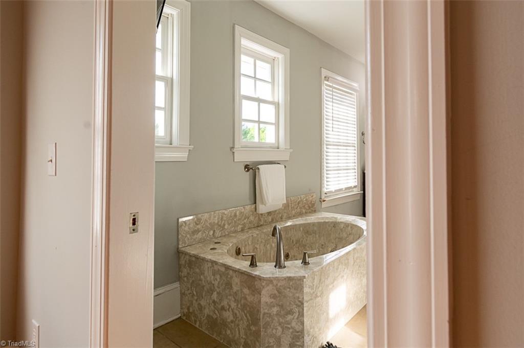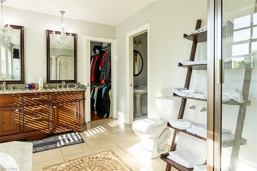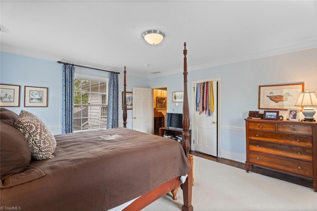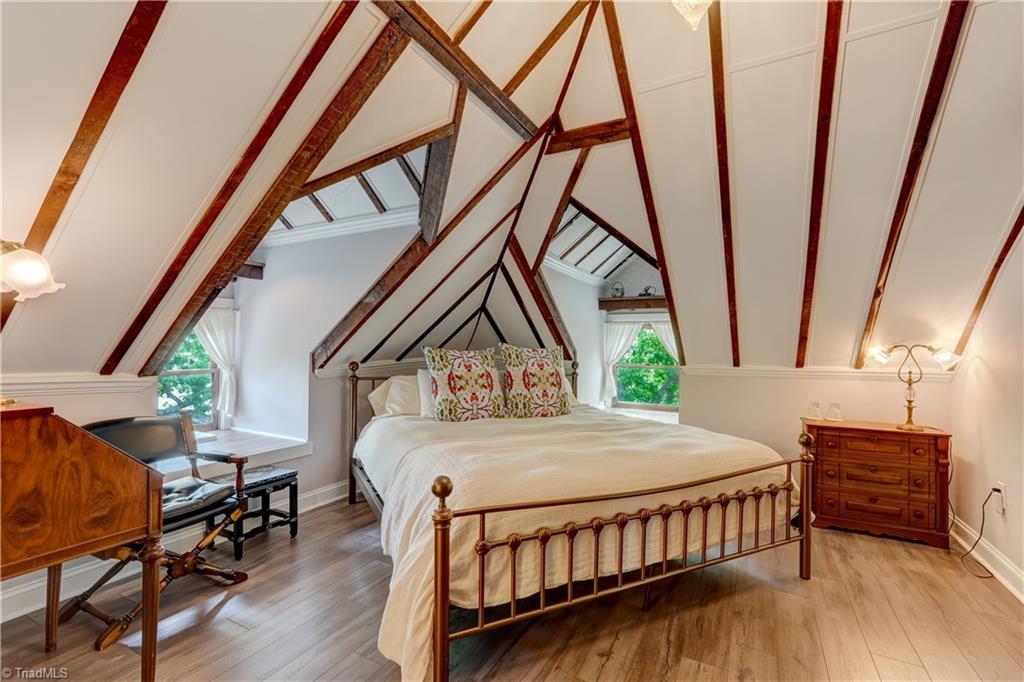 The Colonial Revival house overlooks Lake Brandt. The property includes a 1/6 ownership of the private, 26-acre Richardson Lake. The driveway runs a half-mile from Lake Brandt Road, across the Richardson Lake dam to the house. On a square-foot basis, the house is far less expensive than many less remarkable properties for sale in Irving Park, Sunset Hills and other Greensboro neighborhoods.