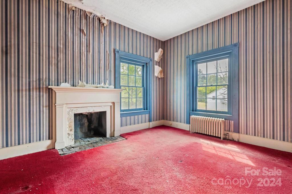 The exterior looks to be in far batter shape than the interior. Although the lot is more than 2 acres (No. 4039 on the GIS map above), there’s a house immediately behind this one on a lot that may have been carved out of this one (No. 4189).