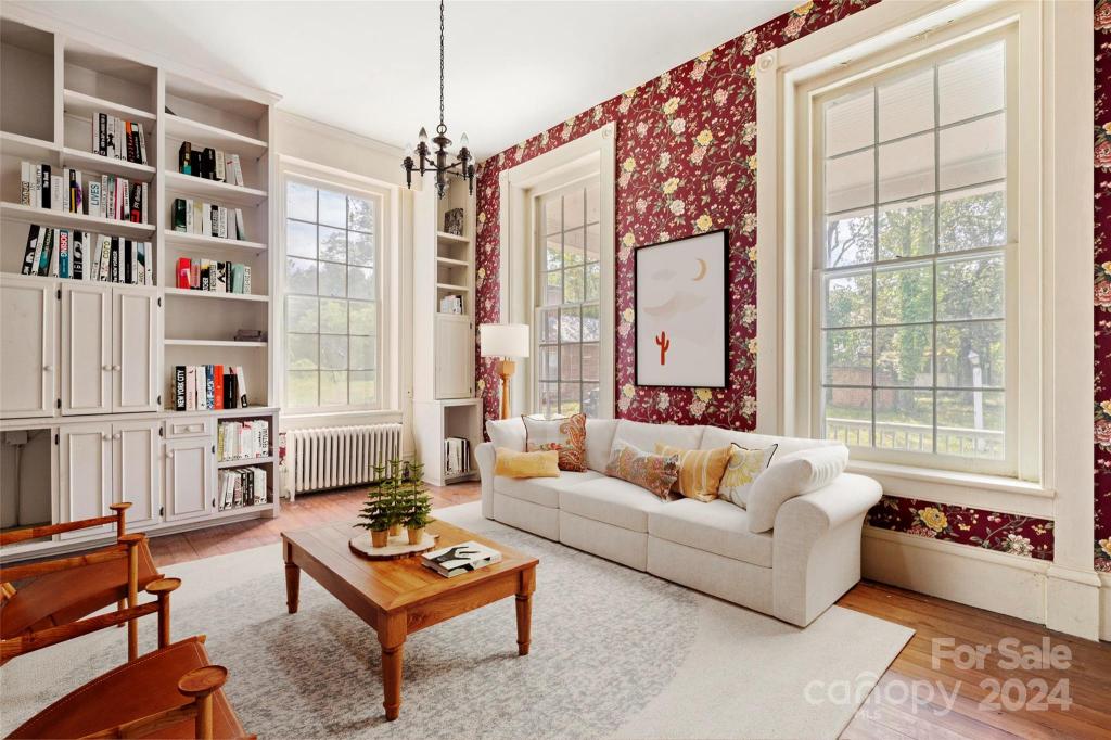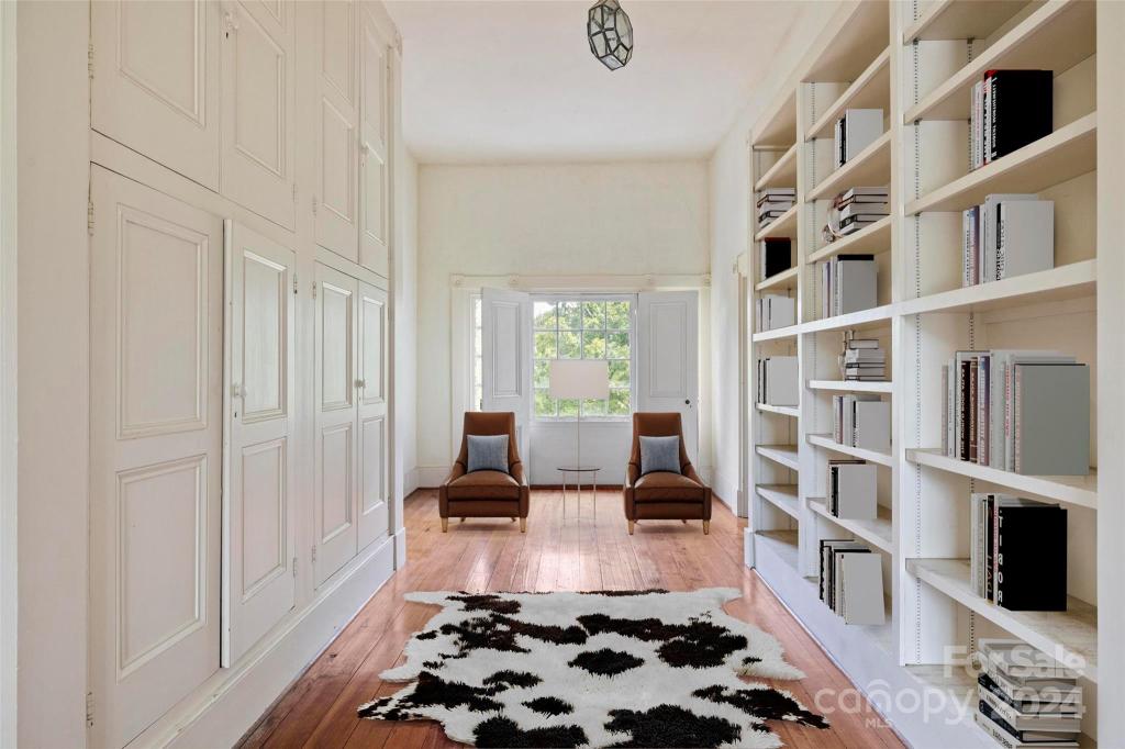 The property includes a round brick barn, two individual guest quarters, a carriage house, a 6,000 square-foot library building with additional bathroom and bedroom, a red barn and two additional outbuildings. “Clover Hill was cited by Thomas Waterman in The Early Architecture of North Carolina and by Talbot Hamlin in Greek Revival Architecture in America as being among the state’s best examples of Greek Revival domestic architecture.”