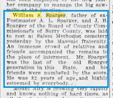 - “The sun sank behind the horizon of the life of this illustrious citizen of North Carolina at twelve-forty o’clock last night, following a critical illness of ten days with pneumonia. He was 67 years old. His works will echo and re-echi [typo, probably] throughout many years to come.”