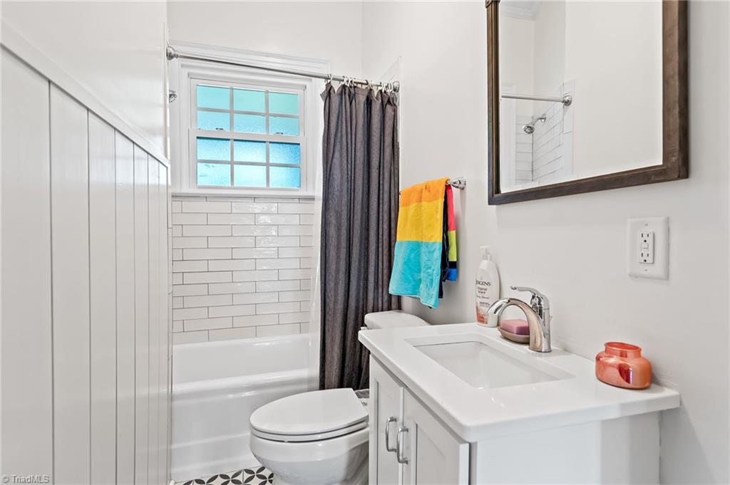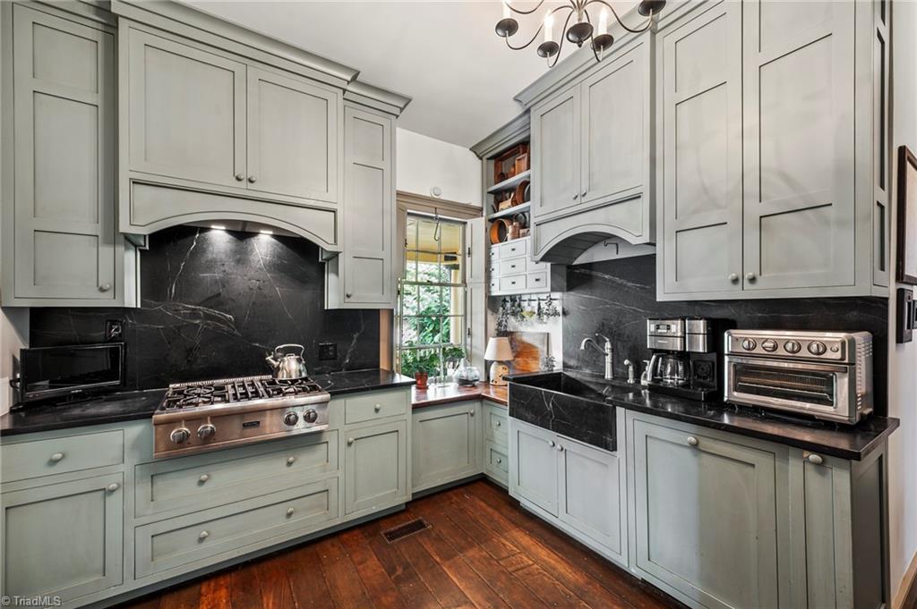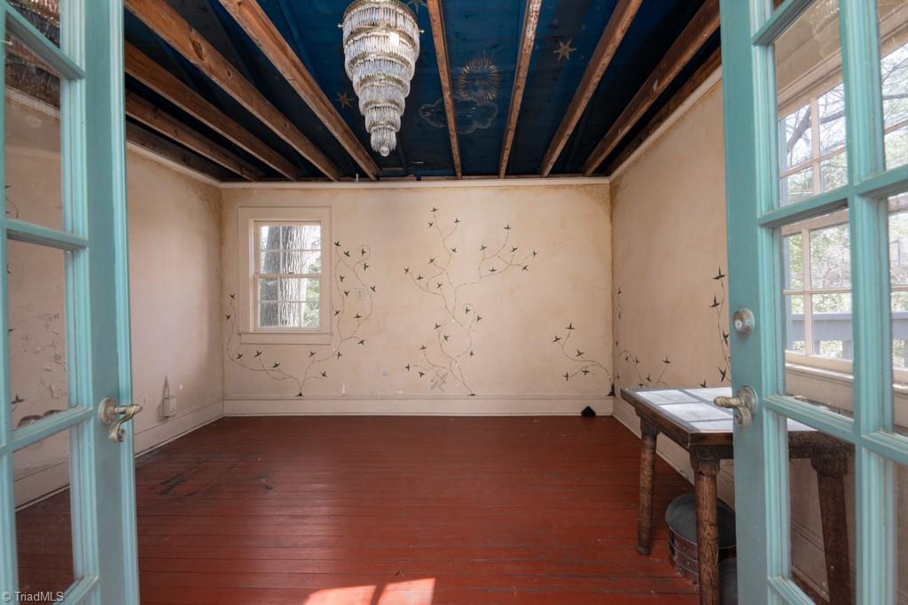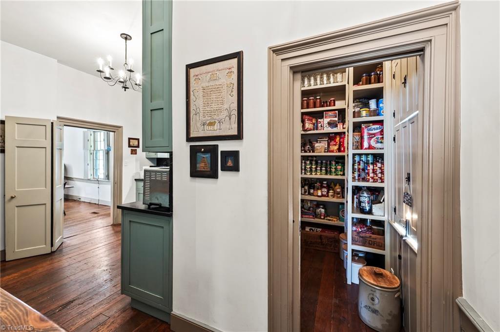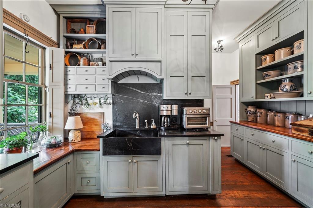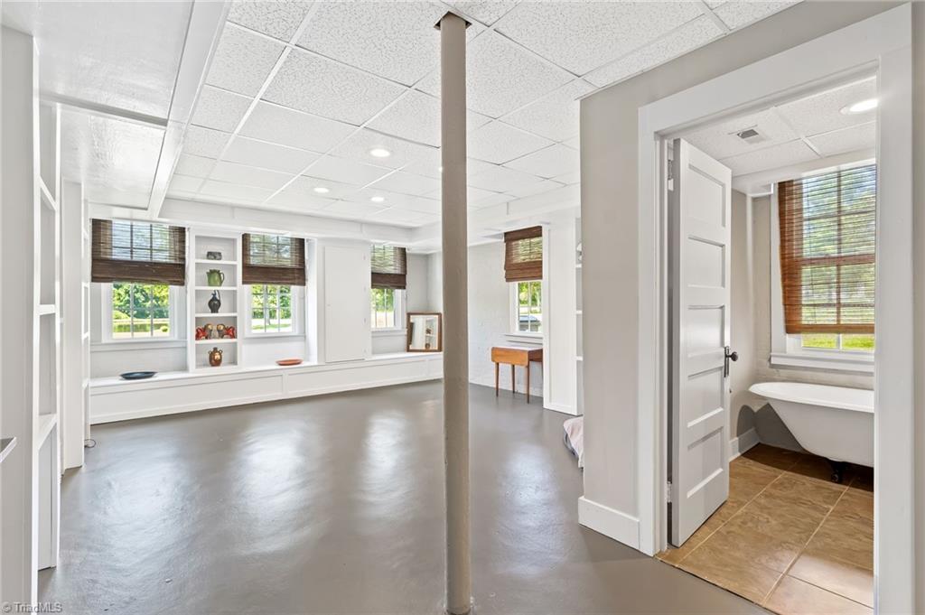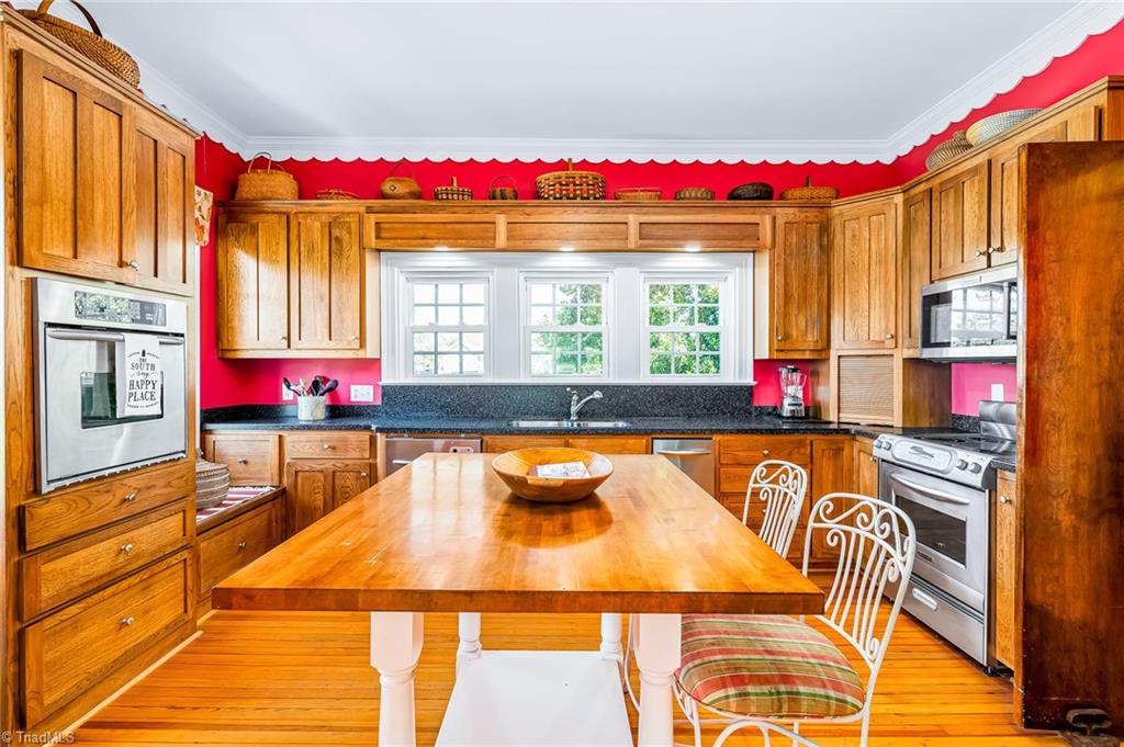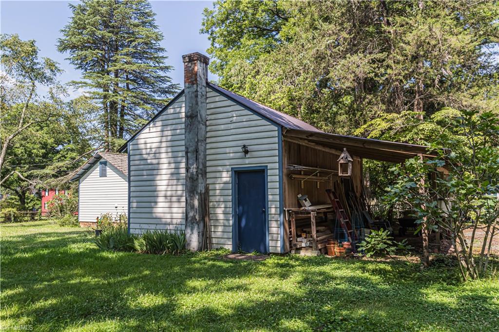 - The sale includes the smaller 5611 Main Street, a circa 1950, 1 bedroom, 1 bathroom guest house. “Both properties are under [Preservation North Carolina] protective covenants and cannot be separated. The work shop [circa 1970] has electric and a wood stove. The block exterior was sheathed to match the house.”