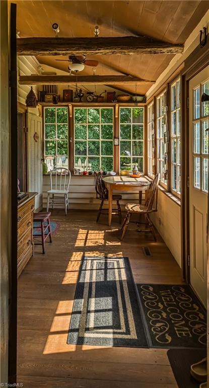 - “This facade under the porch is sheathed in the same sort of flush horizontal boards found on the other walls of Traphill porches that extend across the entire facade.