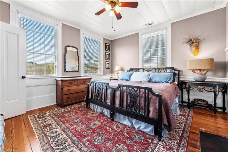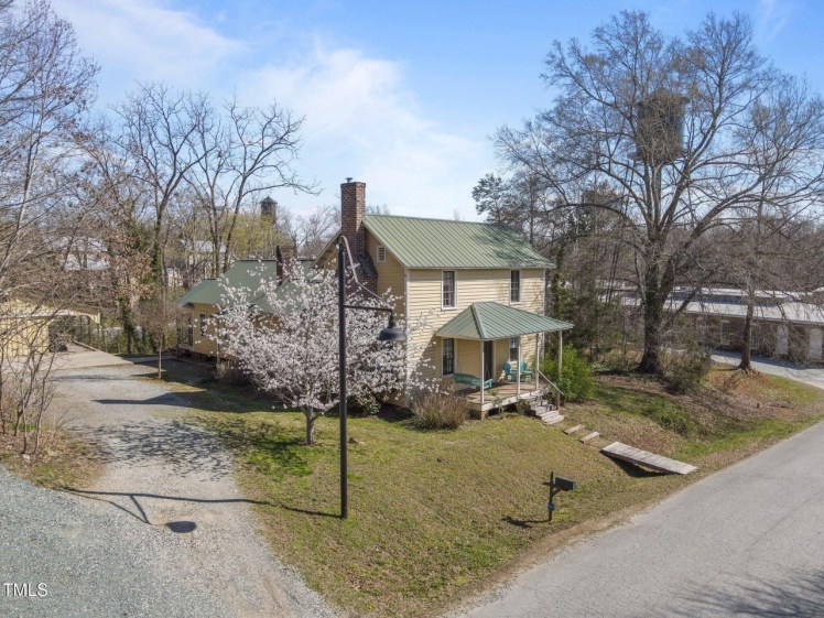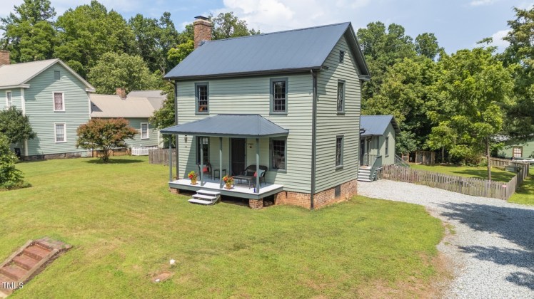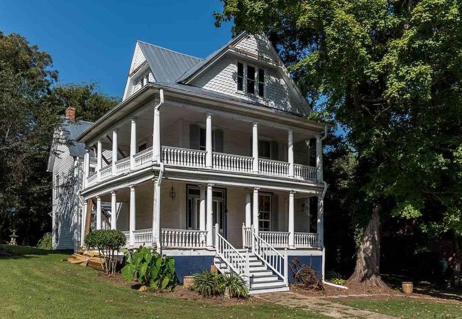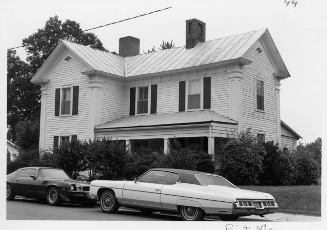 - From the invaluable Caswell County North Carolina website: “Built around 1870, this elegant Victorian house was known for many years as the Dr. Wilson House. The 1880s expansion of the front of the house incorporated a variety of Victorian features including shingled gables above fanciful wood brackets along the eaves, a balcony and side stoop adorned with decorative woodwork and brackets, and a generous two-story, wrap-around porch supported by Doric columns with dentil moldings along the cornice.