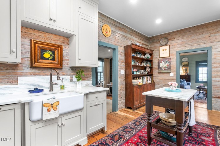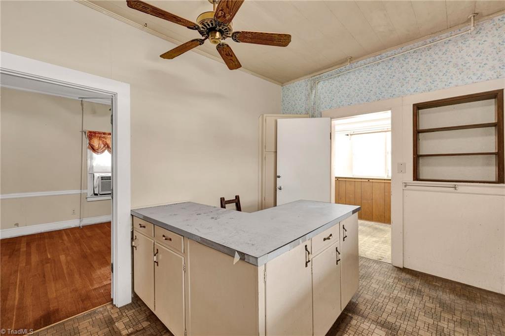 - The house needs significant interior work. Online listings show no photos of the kitchen.
