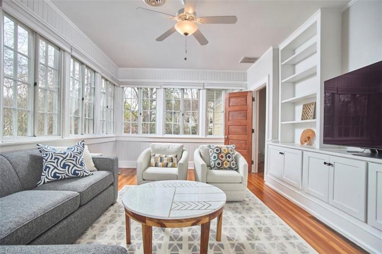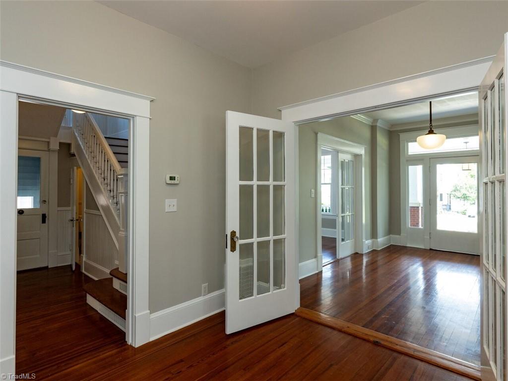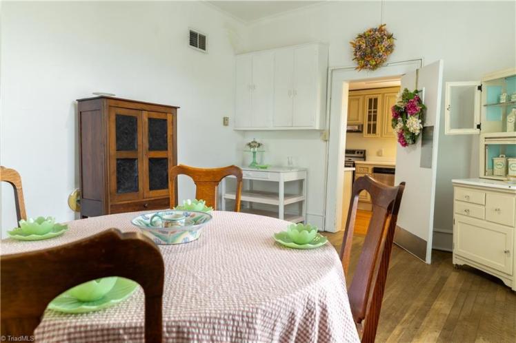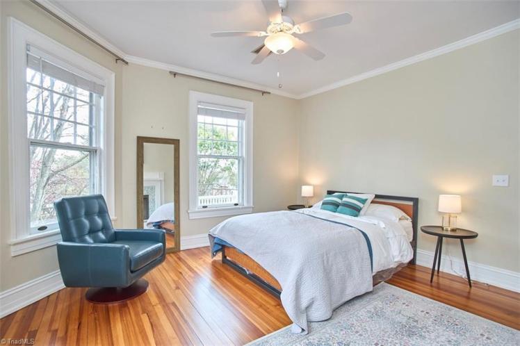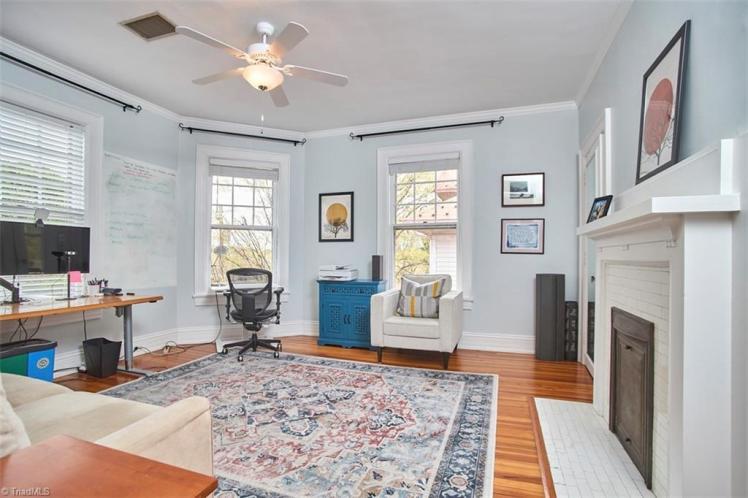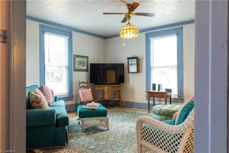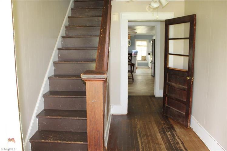 - “Update: Contractor John Kidwell renovated the house in 2013. The columns, which Kidwell notes were made at the Mount Airy Furniture Company, were reglued and the rotted bases replaced. The front rooms of the house were used as waiting and examining rooms by Dr. Baird. Kidwell’s renovation included a new back porch with granite intended to match existing granite in or around the house, new flooring, a reworked staircase, and gas-burning fireplace inserts.