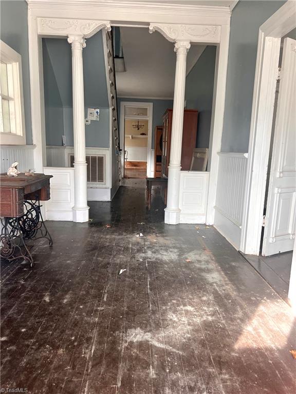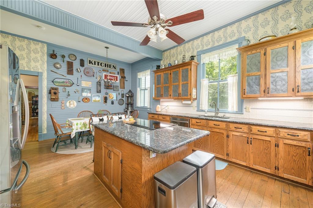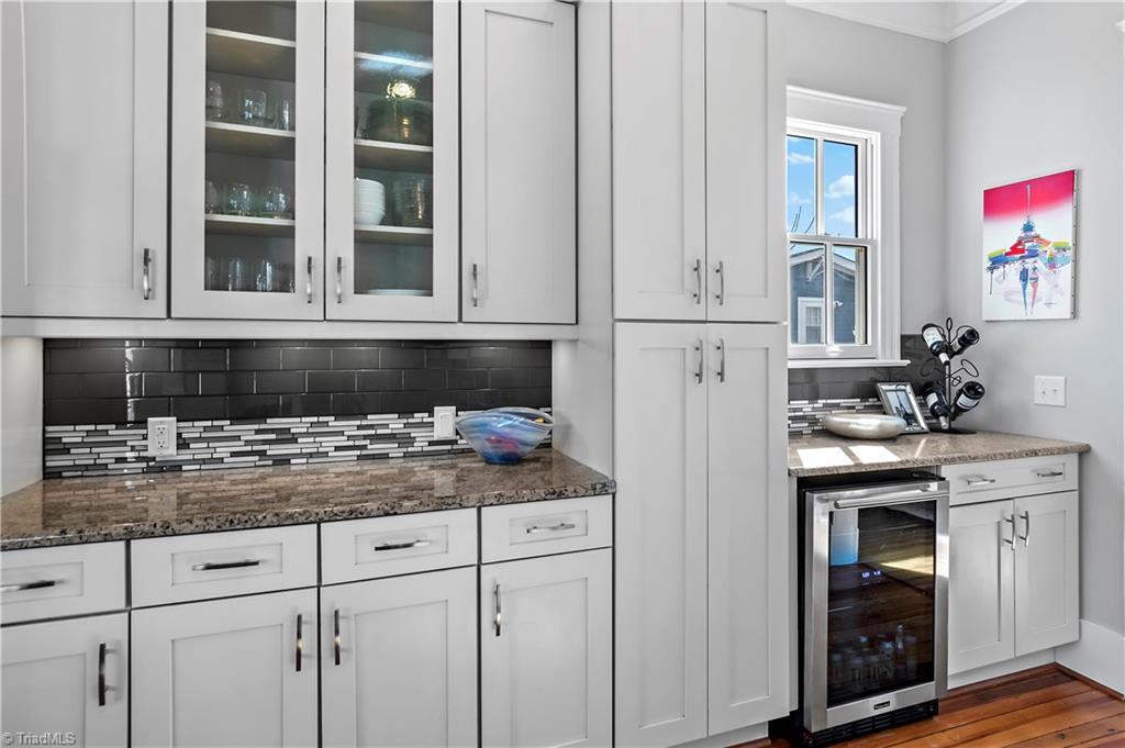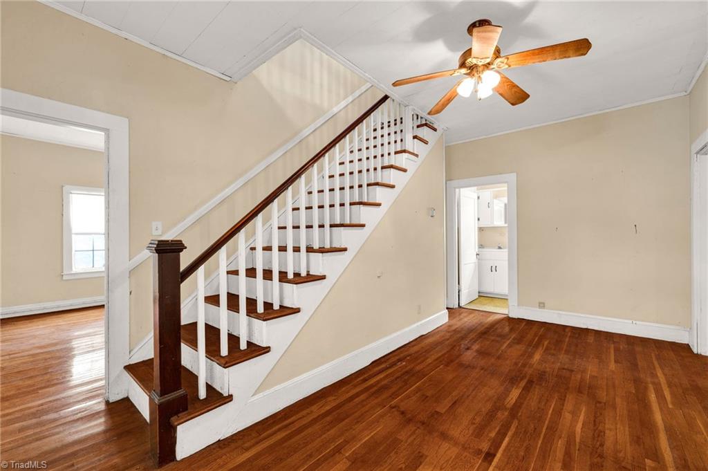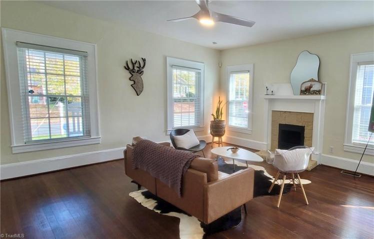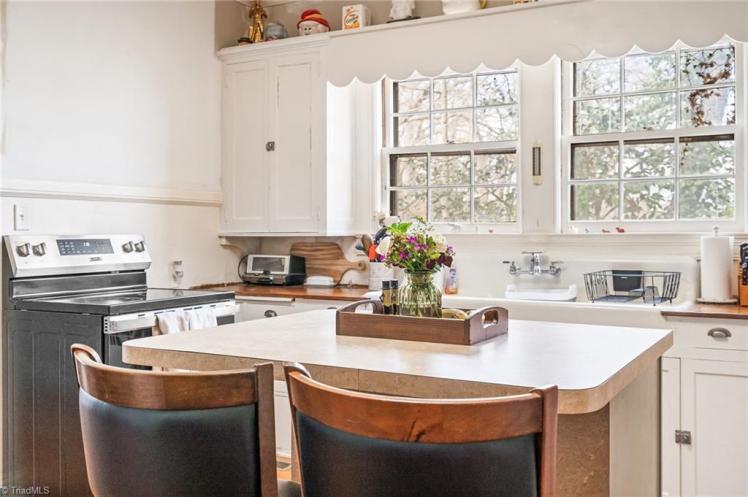 - “Update: Contractor John Kidwell renovated the house in 2013. The columns, which Kidwell notes were made at the Mount Airy Furniture Company, were reglued and the rotted bases replaced. The front rooms of the house were used as waiting and examining rooms by Dr. Baird. Kidwell’s renovation included a new back porch with granite intended to match existing granite in or around the house, new flooring, a reworked staircase, and gas-burning fireplace inserts.