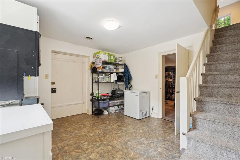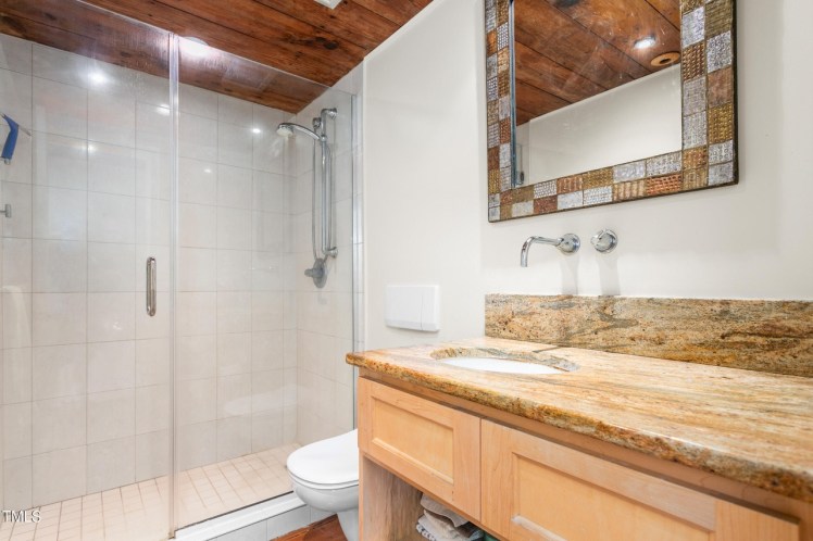 - The basement has a separate entrance, living room, bedroom, 1 ½ baths, kitchenette, office space and a sauna. The 2023 listing said it also had a safe room.