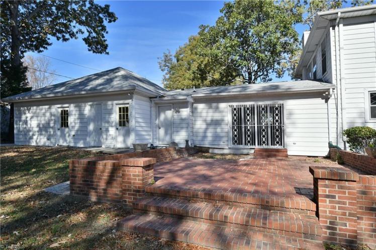 - District NR nomination: “This two-story brick building is typical of the Kerner houses built in the last quarter of the nineteenth century in Kernersville. The L-shaped house follows a center hall plan with a large room to the north and a smaller room to the south. A one-story rear ell houses the kitchen and bath facilities.