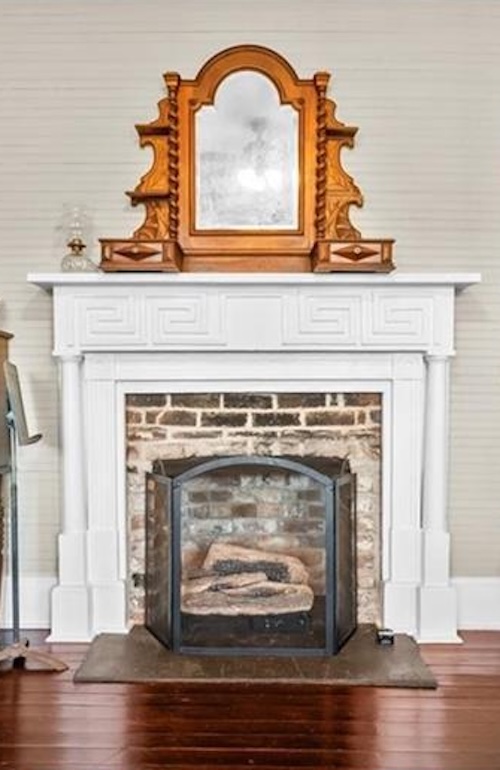 - From The Architectural History of Randolph County North Carolina: “This ca. 1850 dwelling is one of the landmarks of the Greek Revival style in Randolph County. The builder of the two-story center-hall plan house drew inspiration for the decorative trim work from a well-known, widely used builder’s guide, The Practical House Carpenter, by Asher Benjamin.” Two mantels in the house are adapted from Benjamin’s book (Plate 51), a traditional “post and lintel” form with a Greek key design decorating the frieze. “The local artisan’s rendition of the mantel is somewhat crude and two-dimensional when compared to the Asher Benjamin design, but it is important to find that Randolph County craftsmen tried to imitate published examples of their work.