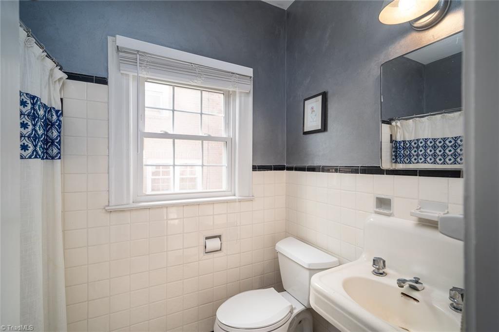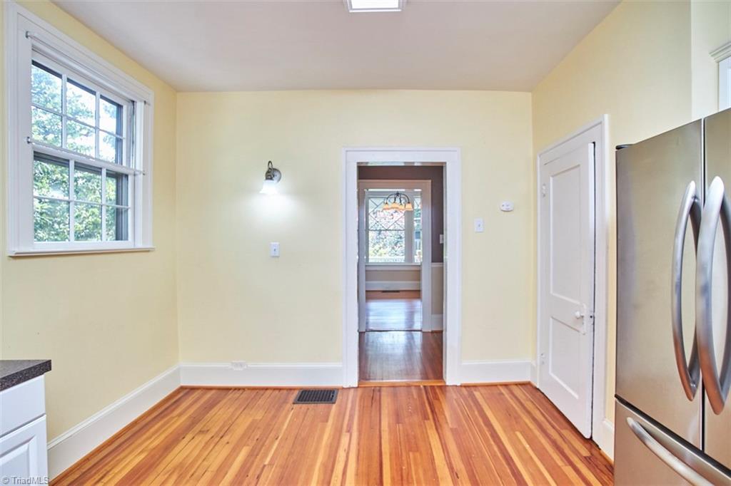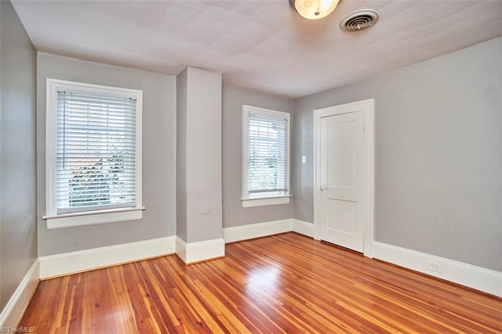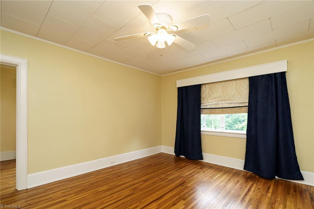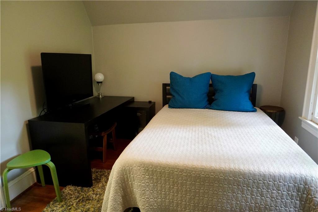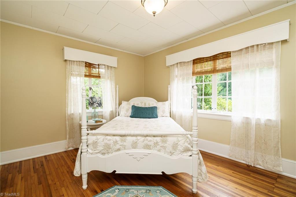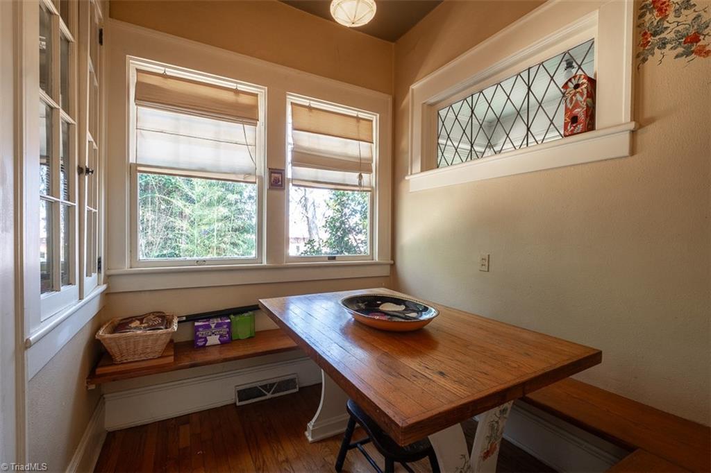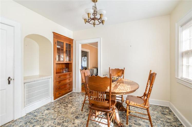 - District NRHP nomination: “Craftsman Bungalow. One and a half story; side gable … eight-over-one, Craftsman-style windows; front-gable dormer; shed-roof porch; square posts on brick piers; knee braces. 1925 [City Directory]: Oliver and Rose Peddycord, a foreman at L.B. Brickenstein; 1934 CD: Thomas and Sudie Vuncannon, a clerk at David Hire; 1945 CD: Harry and Blye Collins, occupant, a baker at Kent Bakeries; 1955 CD: Francis and Beatrice Jarrard, owner-occupant, Jarrard’s Self Service Laundry.”