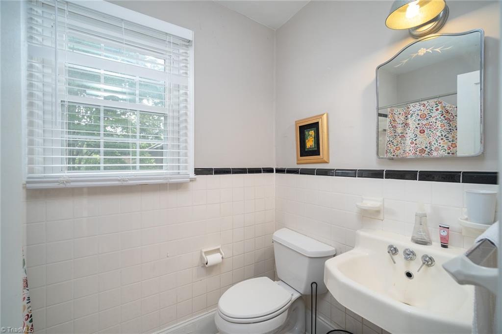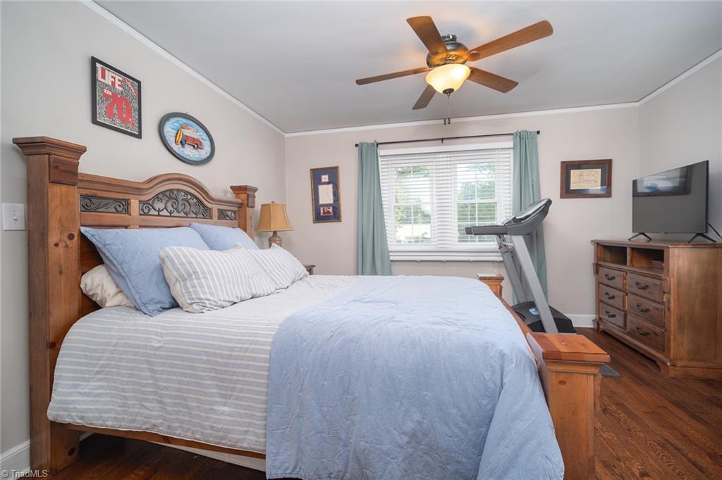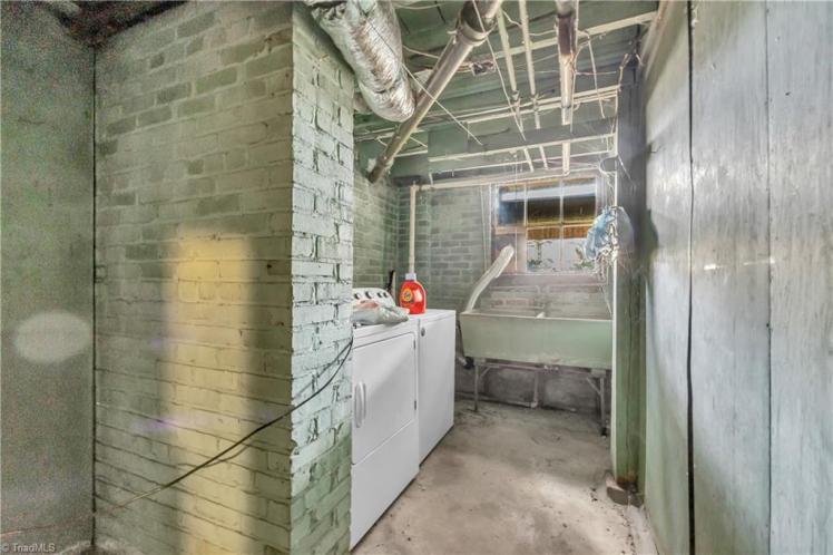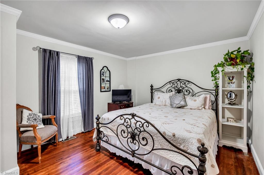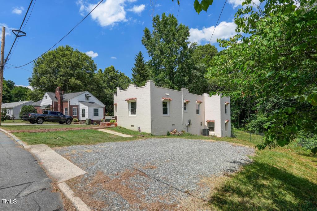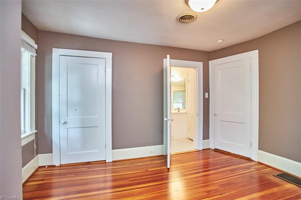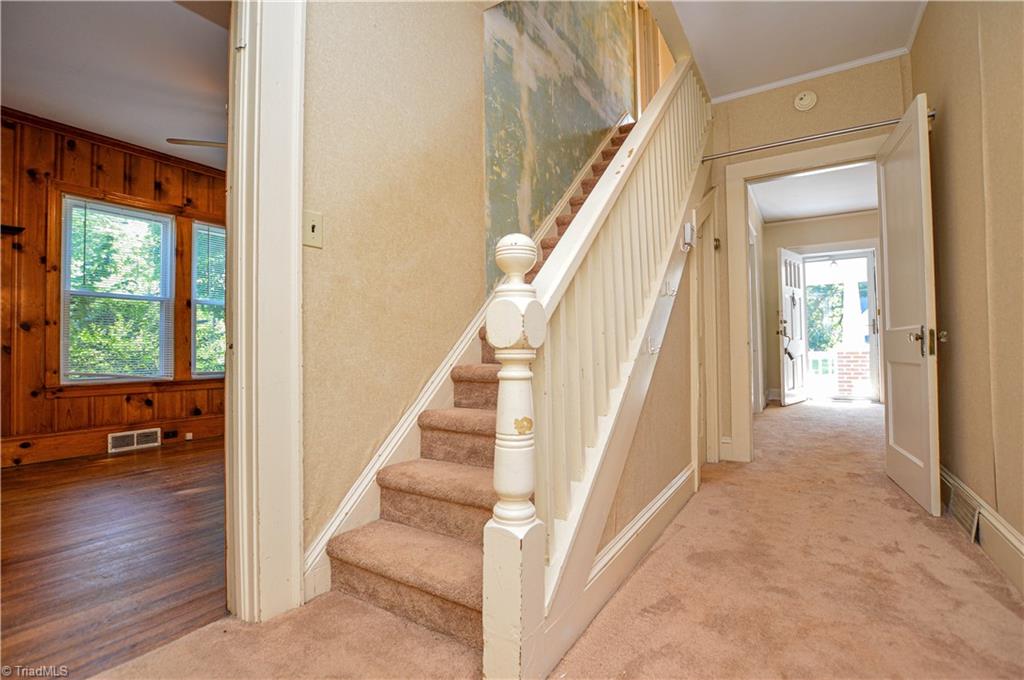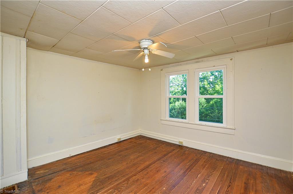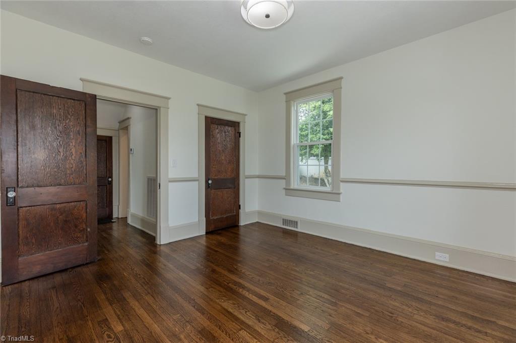 - District NRHP nomination: “Craftsman Bungalow. One and a half story; side gable … eight-over-one, Craftsman-style windows; front-gable dormer; shed-roof porch; square posts on brick piers; knee braces. 1925 [City Directory]: Oliver and Rose Peddycord, a foreman at L.B. Brickenstein; 1934 CD: Thomas and Sudie Vuncannon, a clerk at David Hire; 1945 CD: Harry and Blye Collins, occupant, a baker at Kent Bakeries; 1955 CD: Francis and Beatrice Jarrard, owner-occupant, Jarrard’s Self Service Laundry.”