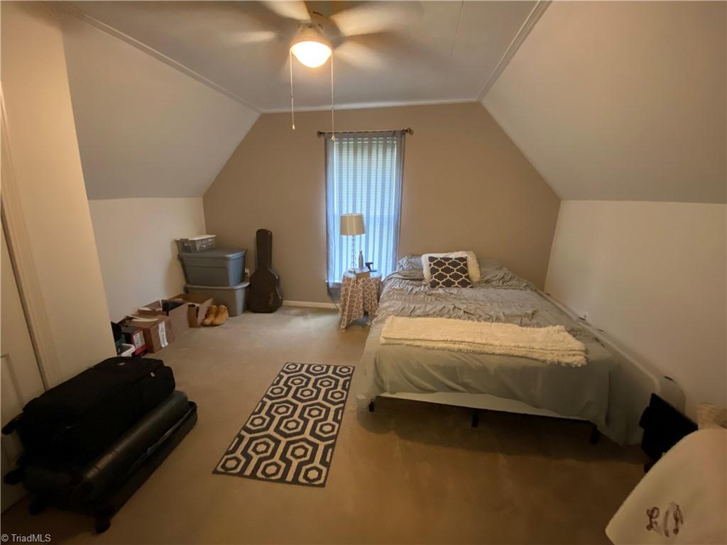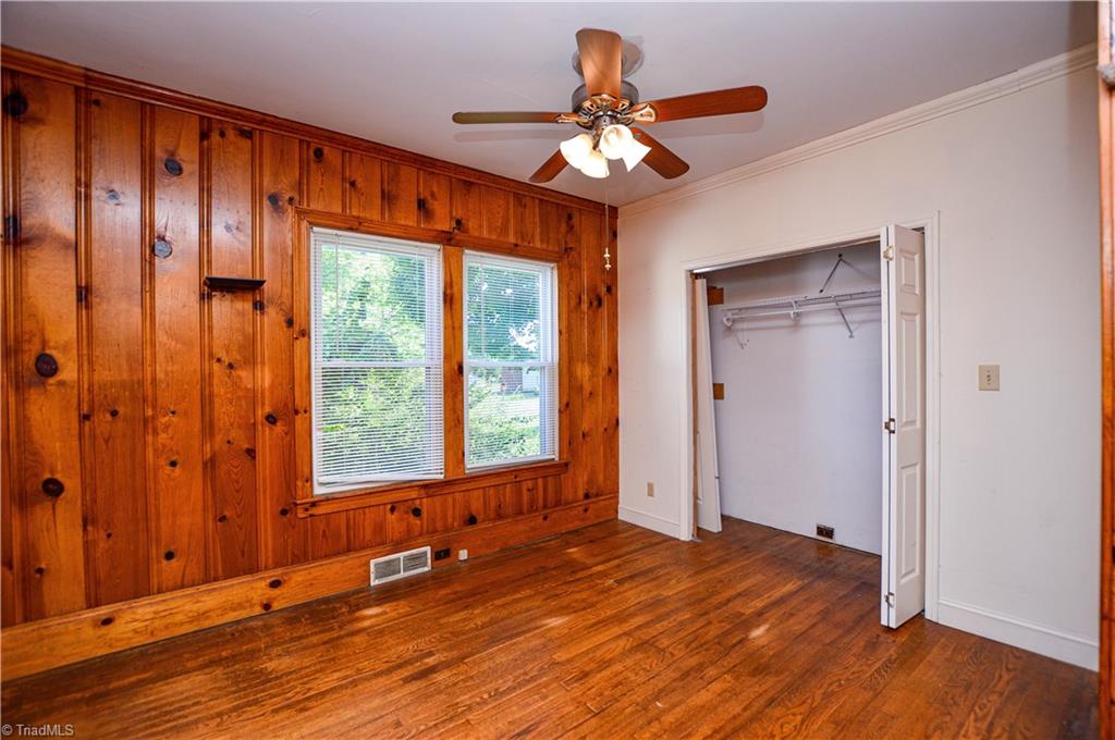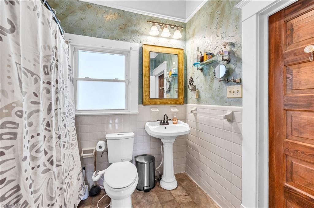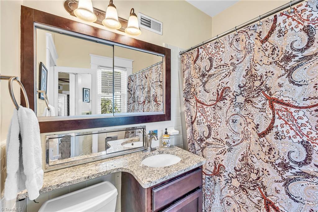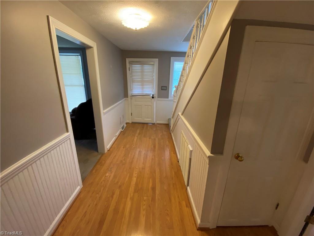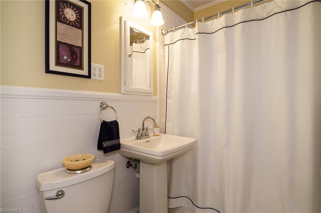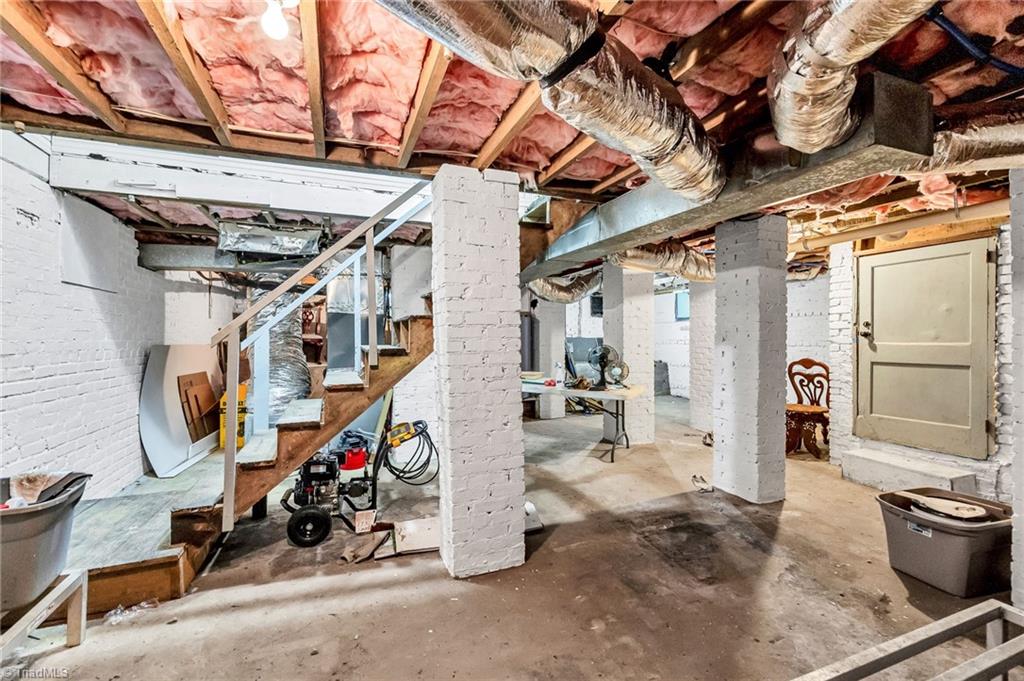 - District NRHP nomination: “Craftsman Bungalow. One and a half story; side gable … eight-over-one, Craftsman-style windows; front-gable dormer; shed-roof porch; square posts on brick piers; knee braces. 1925 [City Directory]: Oliver and Rose Peddycord, a foreman at L.B. Brickenstein; 1934 CD: Thomas and Sudie Vuncannon, a clerk at David Hire; 1945 CD: Harry and Blye Collins, occupant, a baker at Kent Bakeries; 1955 CD: Francis and Beatrice Jarrard, owner-occupant, Jarrard’s Self Service Laundry.”