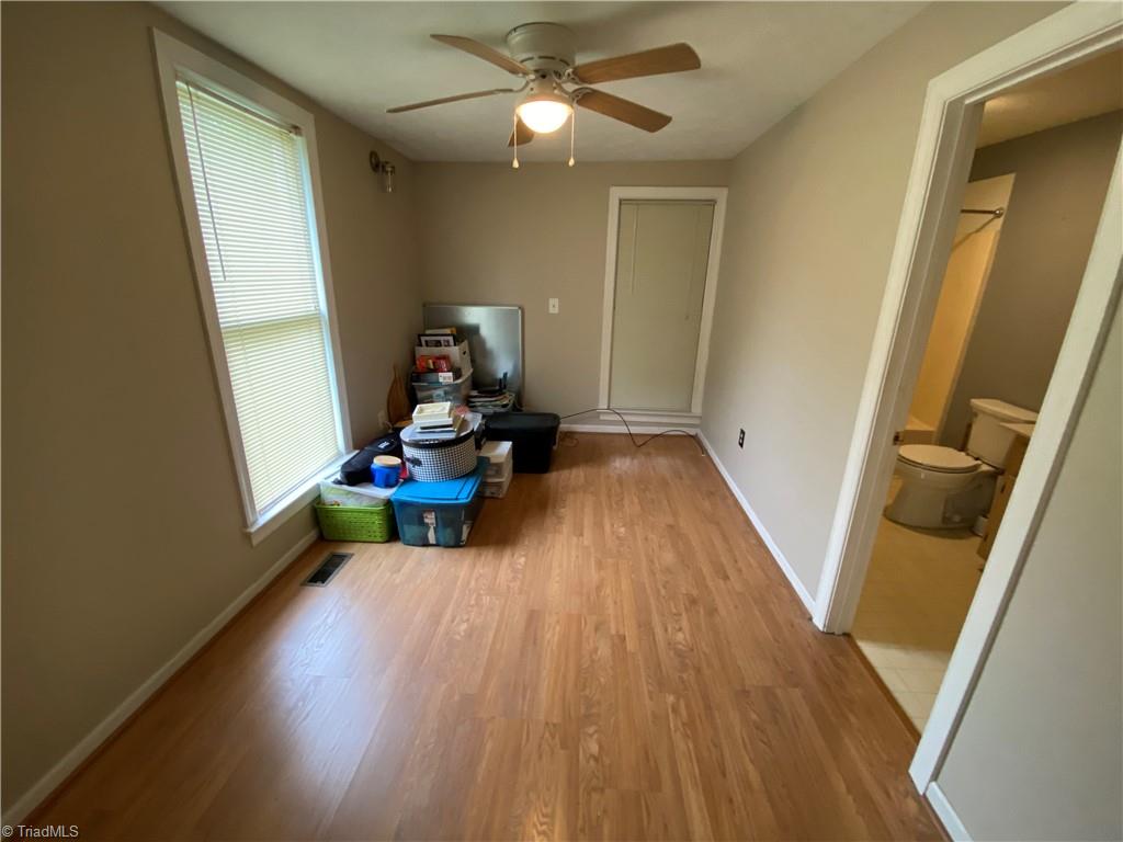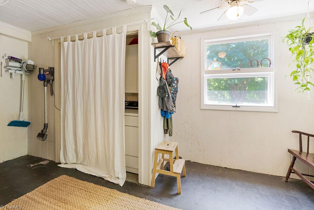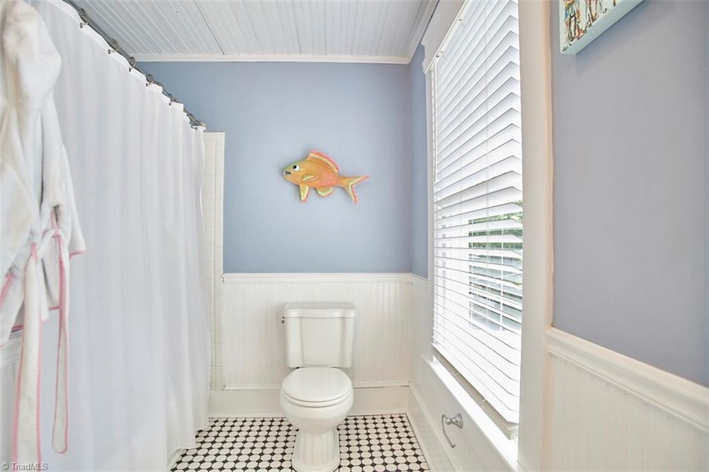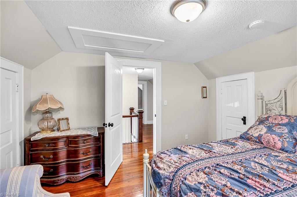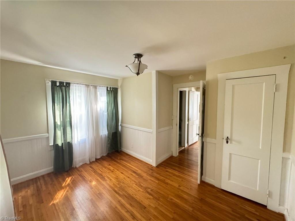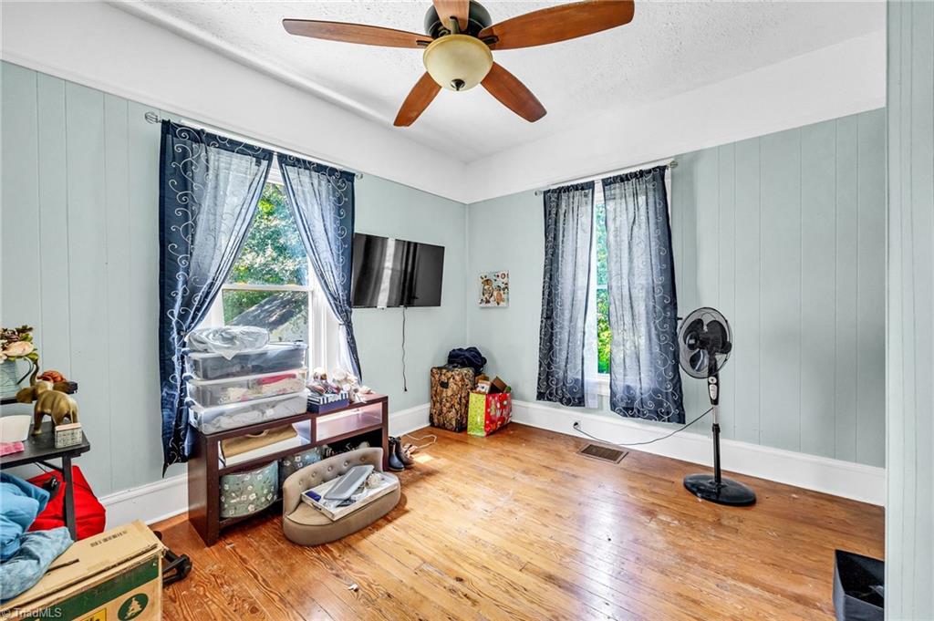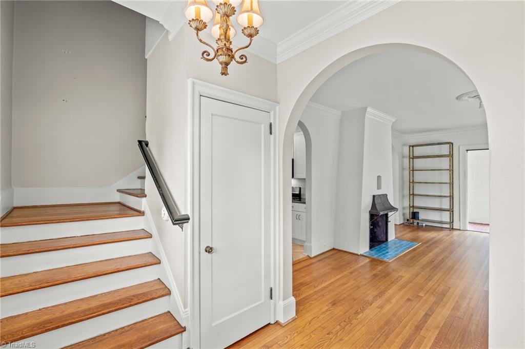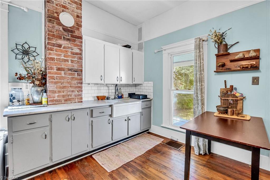 - District NRHP nomination: “Craftsman Bungalow. One and a half story; side gable … eight-over-one, Craftsman-style windows; front-gable dormer; shed-roof porch; square posts on brick piers; knee braces. 1925 [City Directory]: Oliver and Rose Peddycord, a foreman at L.B. Brickenstein; 1934 CD: Thomas and Sudie Vuncannon, a clerk at David Hire; 1945 CD: Harry and Blye Collins, occupant, a baker at Kent Bakeries; 1955 CD: Francis and Beatrice Jarrard, owner-occupant, Jarrard’s Self Service Laundry.”