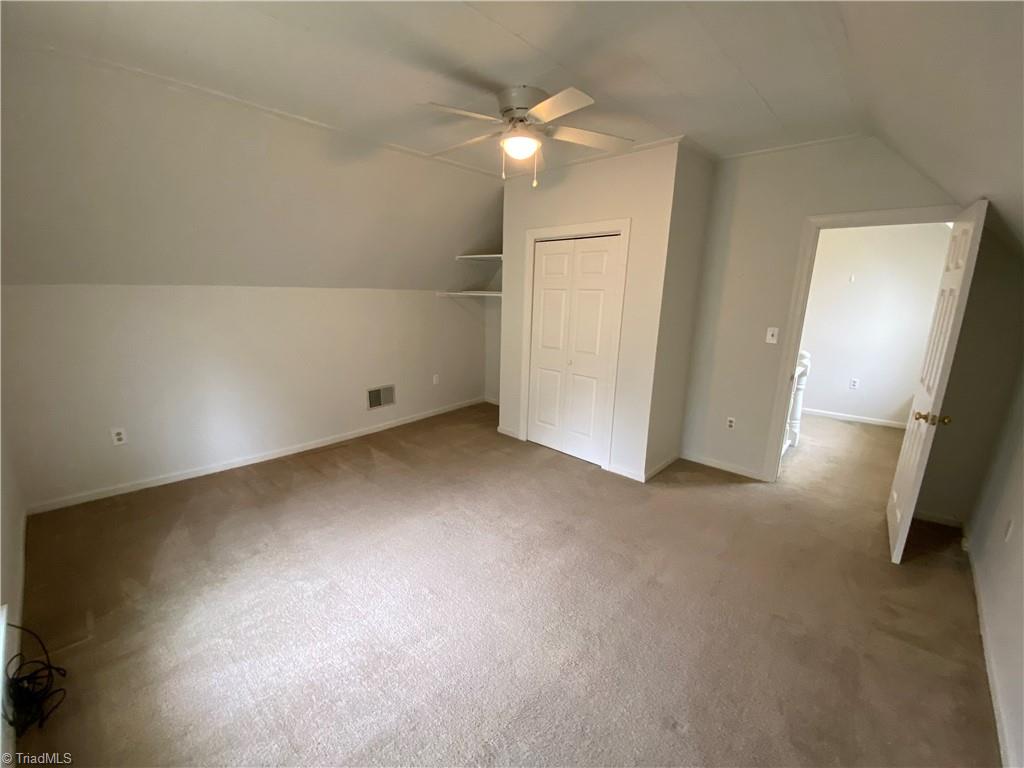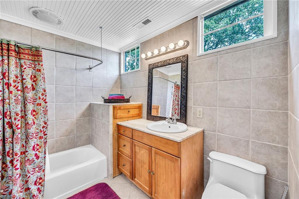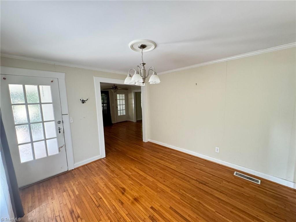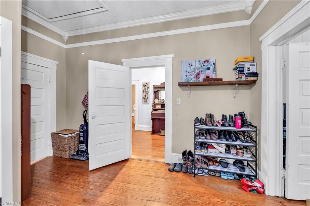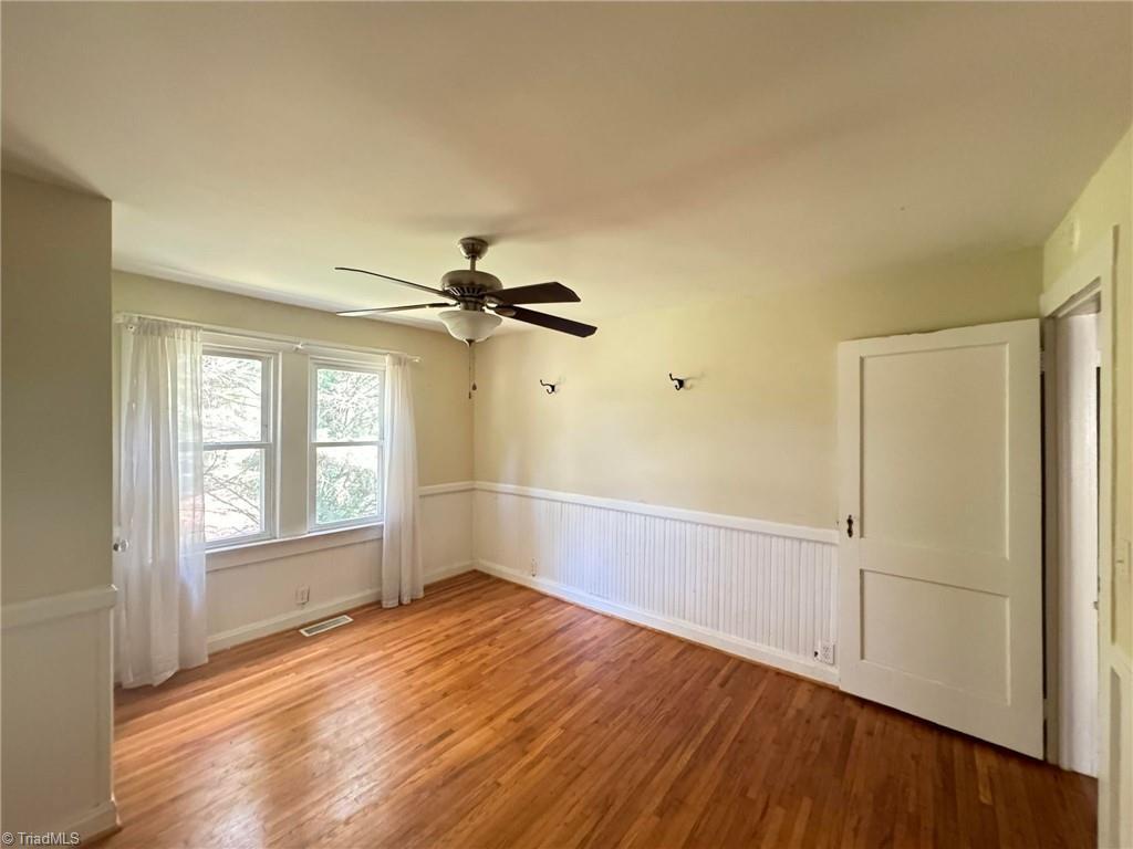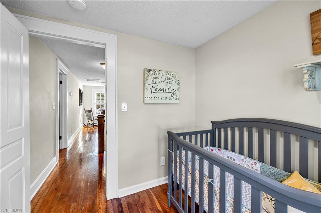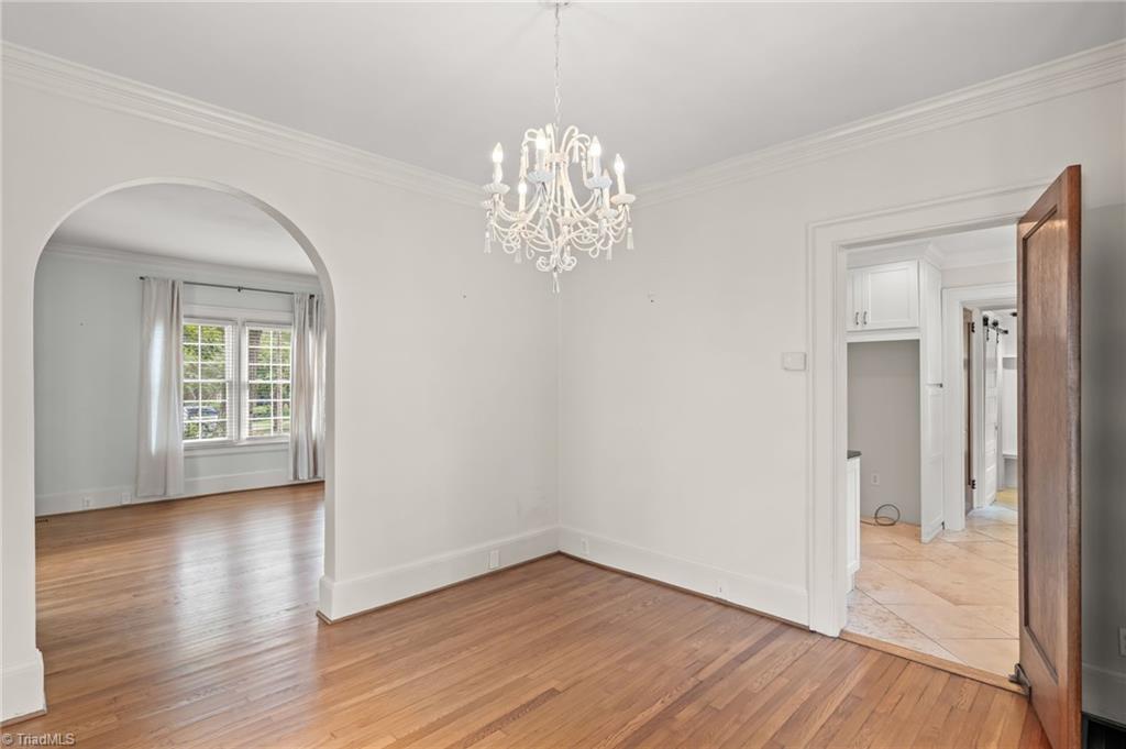 - District NRHP nomination: “Craftsman Bungalow. One and a half story; side gable … eight-over-one, Craftsman-style windows; front-gable dormer; shed-roof porch; square posts on brick piers; knee braces. 1925 [City Directory]: Oliver and Rose Peddycord, a foreman at L.B. Brickenstein; 1934 CD: Thomas and Sudie Vuncannon, a clerk at David Hire; 1945 CD: Harry and Blye Collins, occupant, a baker at Kent Bakeries; 1955 CD: Francis and Beatrice Jarrard, owner-occupant, Jarrard’s Self Service Laundry.”