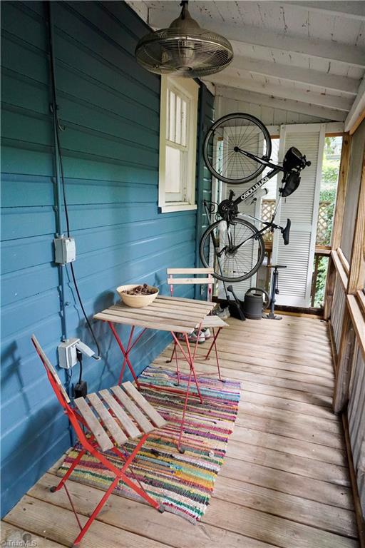 - “On the north side of the house is a steep and narrow shed-roofed dormer covered with asbestos shingles. At the rear of the house is a shed-roofed screened porch.”