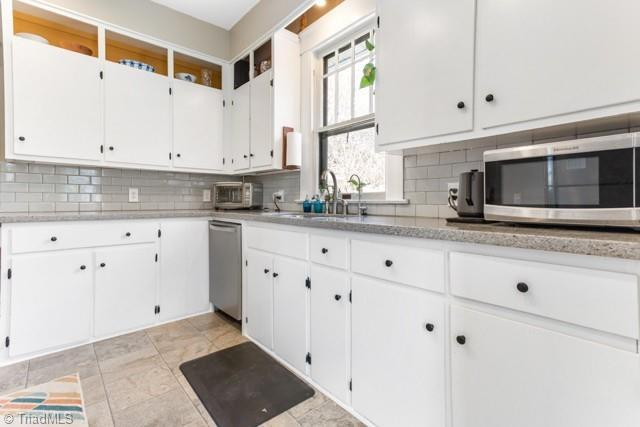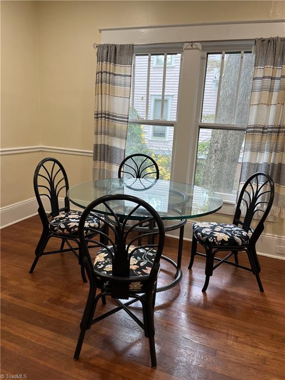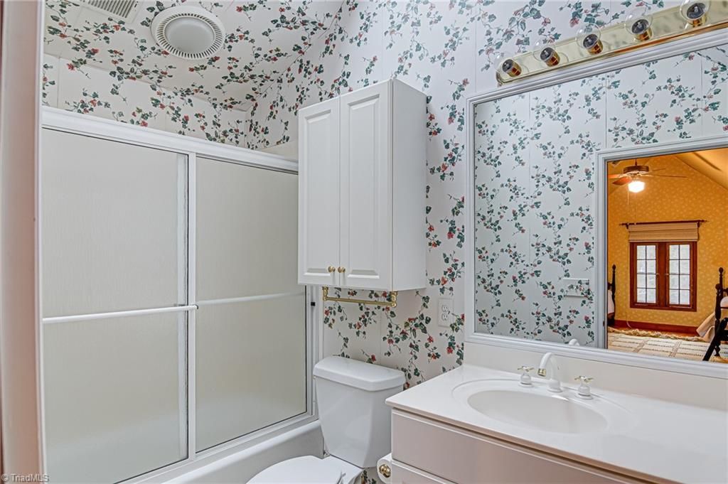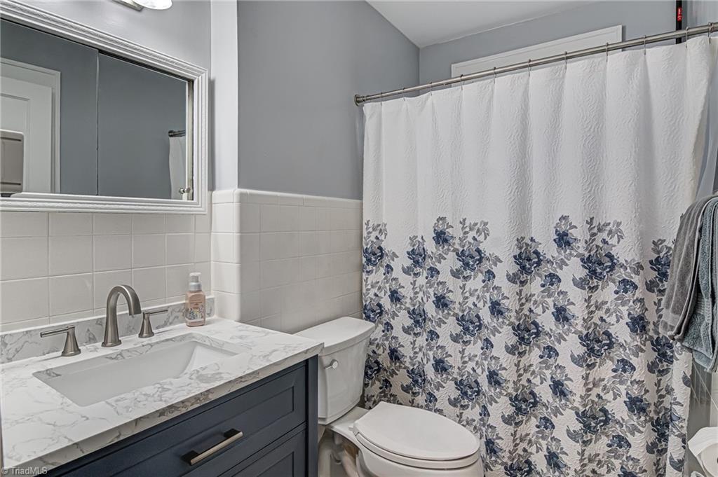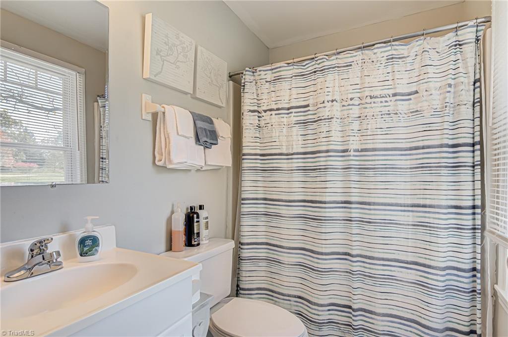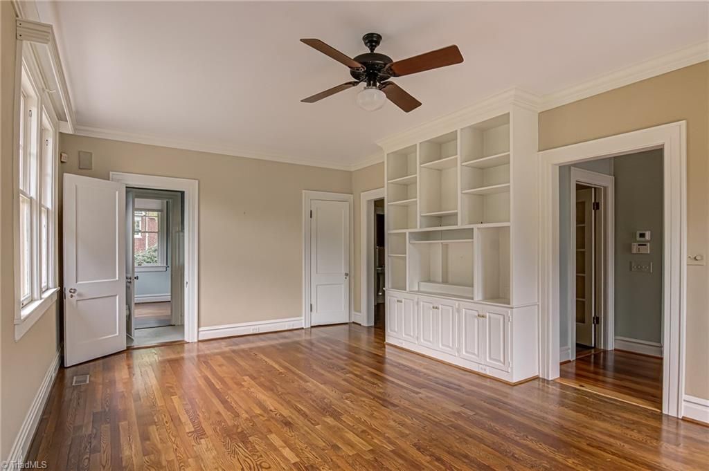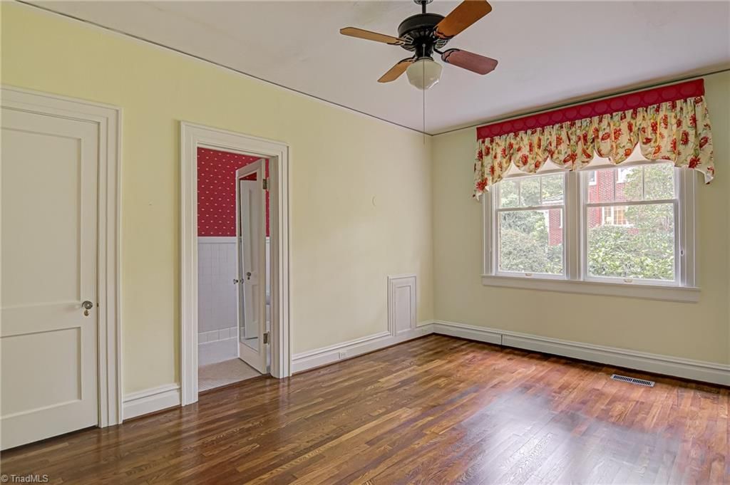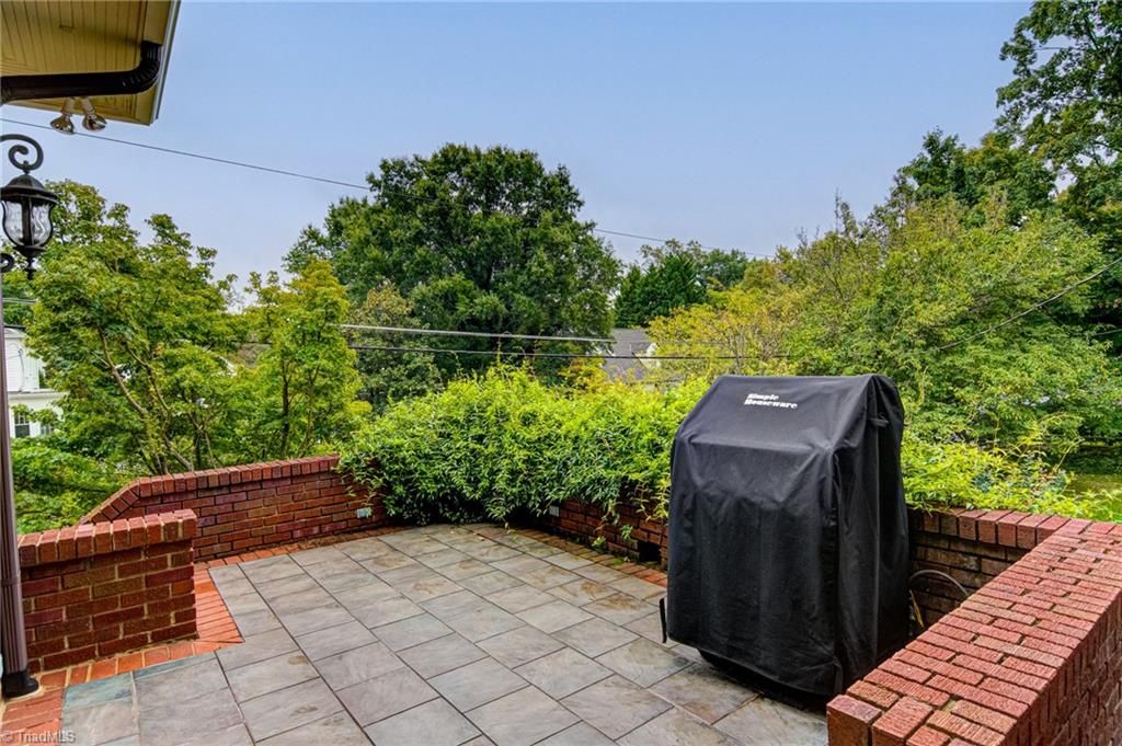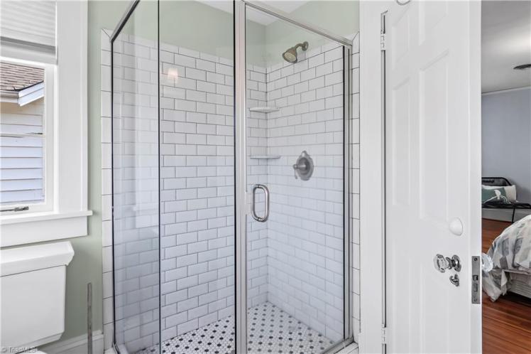 - District NR nomination: “Period Cottage. One and a half story; side gable; gable-roof dormers; asbestos shingle siding; six-over-six, double-hung sash and one-over-one replacement windows; front patio; small sidelights; steeply pitched, front-gable entry pavilion. 1938 CD: (1153) Thomas Wilson, an engineer at Piedmont Engraving.”