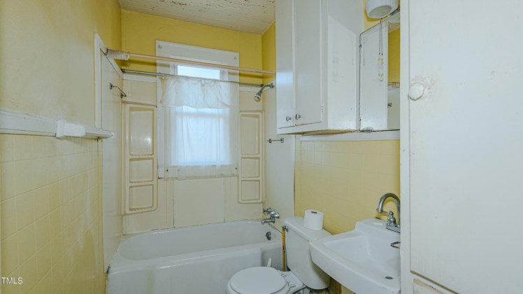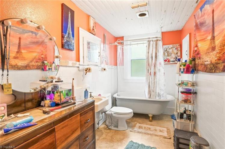 - Listing: “water damage on the roof in the bathroom, a structural evaluation is recommended, and LVP flooring needs to be replaced in the kitchen and bathroom.”