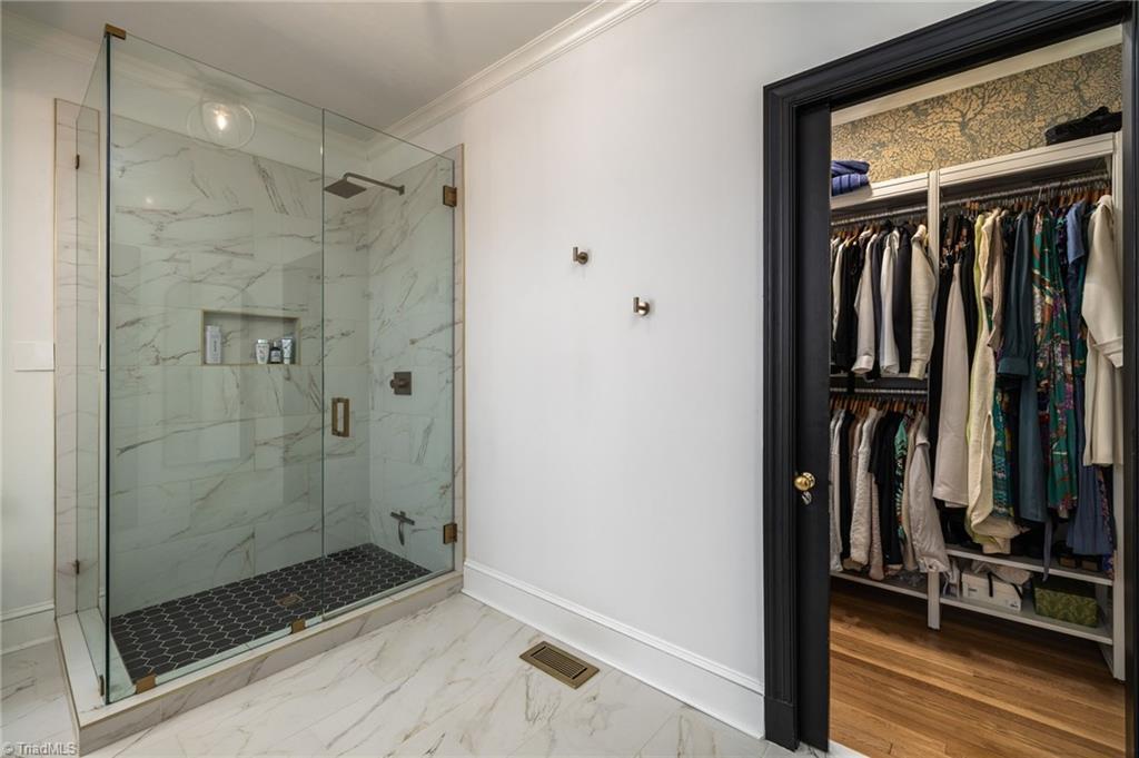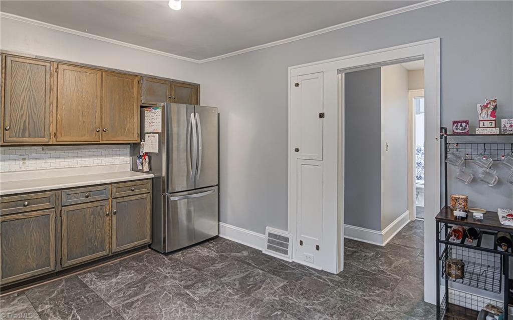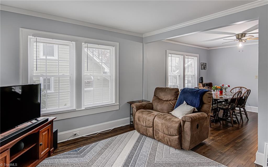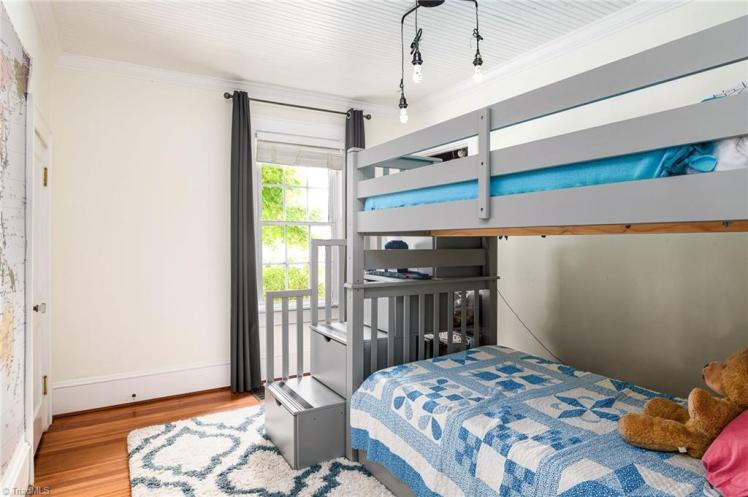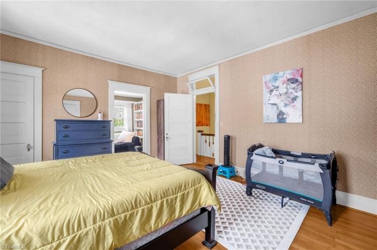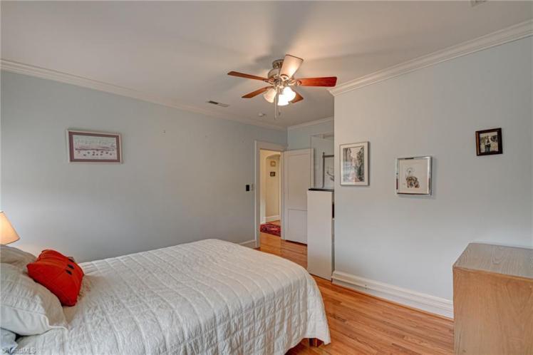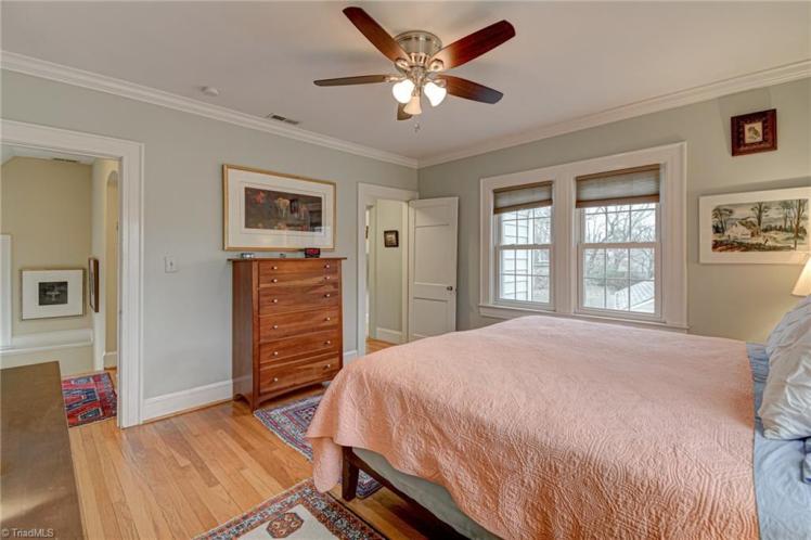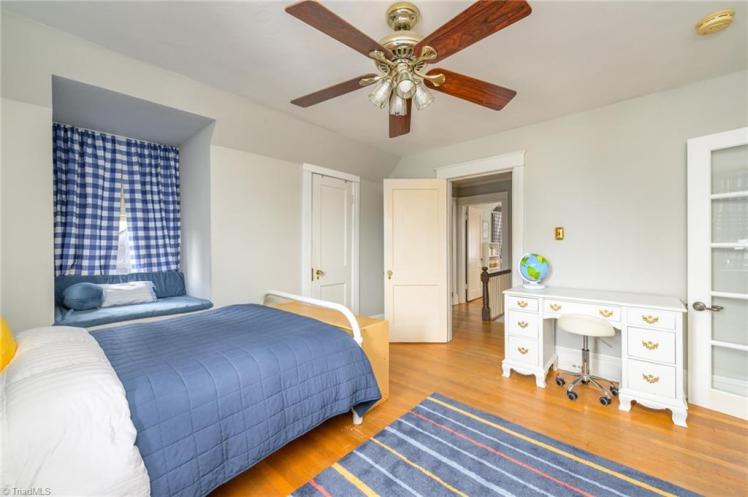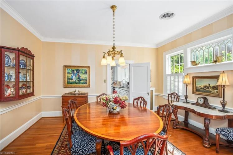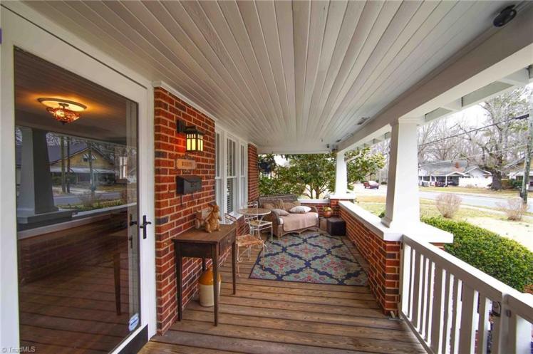 - District NRHP nomination: “1 1/2 story brick Craftsman style house, with overhanging, bracketted eaves, a hooded front entrance, a brick shed dormer, and a front porch with massive brick posts. Walter Crissman bought this lot in 1927 and had the house built soon afterward as a residence for his mother. Upon her death Mr. Crissman and his wife moved in and lived here until 1966. Crissman had a long and illustrious career as a lawyer and Superior Court judge in High Point.”