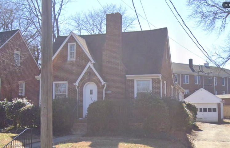 - District NR nomination: “Period Cottage. One and a halfstory; side gable; front-gable projection; brick; one-over-one replacement windows; side porch; metal awning at entry [no longer present].” The address was first listed in the city directory in 1939 with J. Malbert Smith (1895-1972) and Adelaide Howard Smith (1895-1967) as residents. Malbert was district manager for the Life Insurance Company of Virginia.