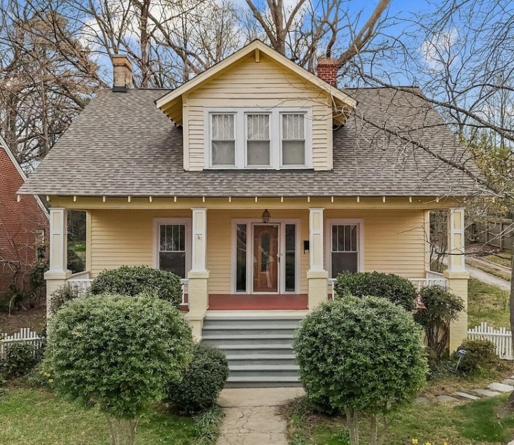 - District NR nomination: “Craftsman Bungalow. Side gable; asbestos siding; front gable donner; engaged porch with square posts; three (vertical light)-over-one sash; exposed rafter tails; knee braces. 1928 CD: Miss Blanche Early, clerk at Gilmer Dry Goods Company.”