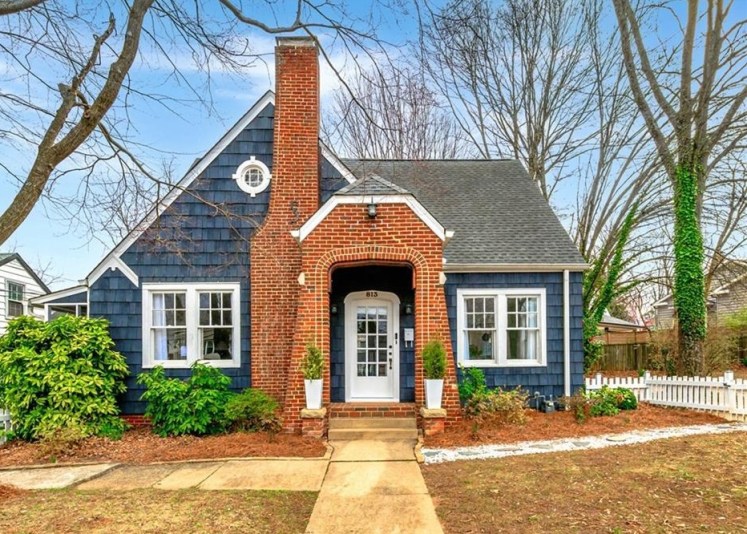 The best new listing is in High Point’s Emerywood neighborhood. If there’s a more attention-getting house for sale in High Point than 427 Woodbrook Drive, I’d love to see it. The Alex and Adele Rankin House is a grand Tudor Revival on a big lot, white with yellowish-brown half-timbers, shutters and trim. It’s for sale at $950,000; at 3,753 square feet, the price is $253/square foot, relatively reasonable for a house like this these days. Built in 1924, it has a grand vaulted Tudor living room and period color tile in the bathrooms.