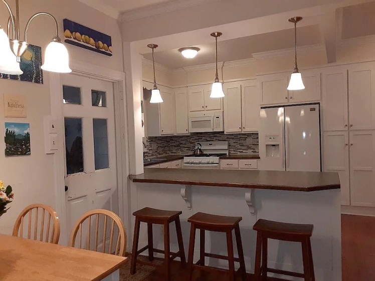 - Note: “The upstairs is not currently heated; the owners used window units for cooling, and it’s unclear if the central air is operational downstairs.” The upstairs rooms and hallway need some work.