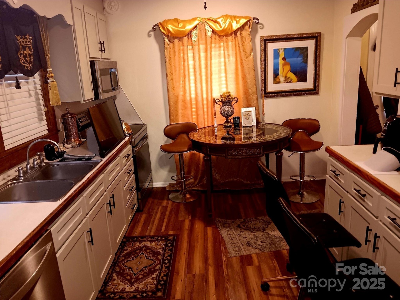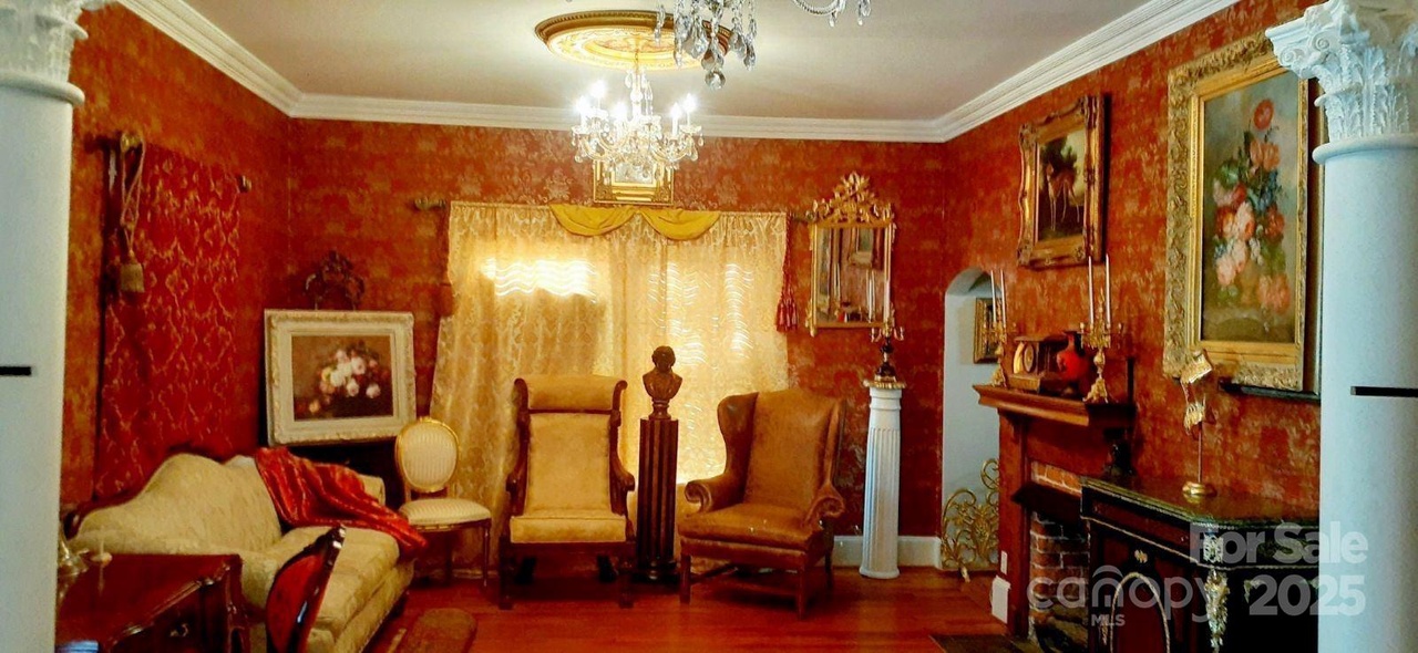 - Note: The first photo above is the only one included in the initial “coming soon” for-sale listing. Second photo above by Kirk Franklin Mahoney from Davie County Historical and Genealogical Society, via Davie County Public Library and DigitalNC.org.