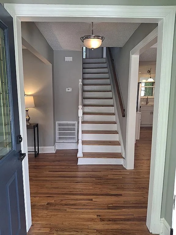 - Note: “The upstairs is not currently heated; the owners used window units for cooling, and it’s unclear if the central air is operational downstairs.” The upstairs rooms and hallway need some work.
