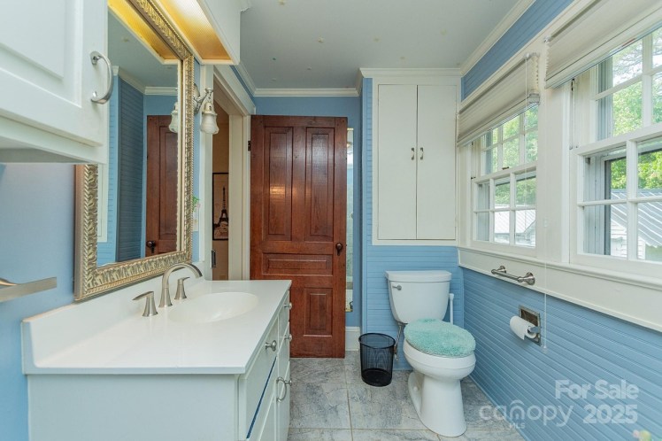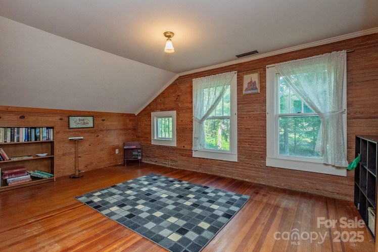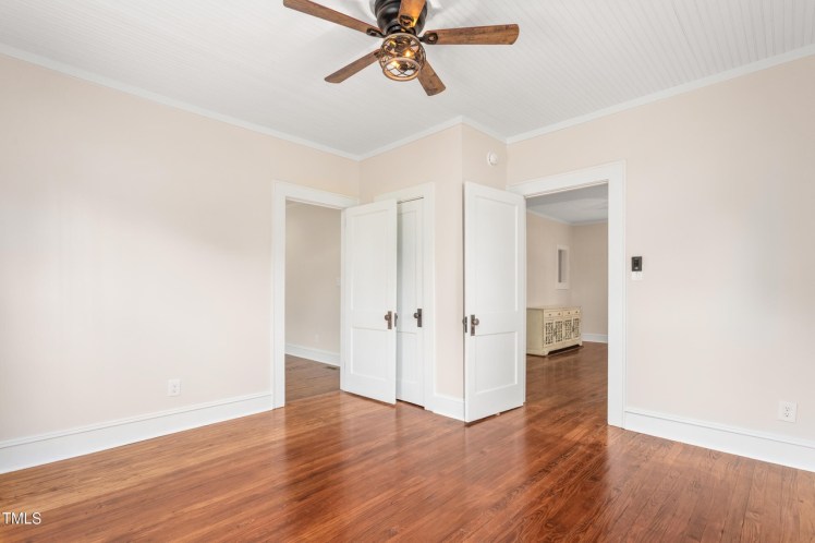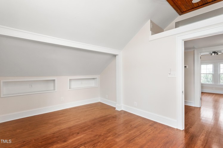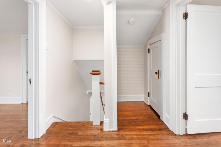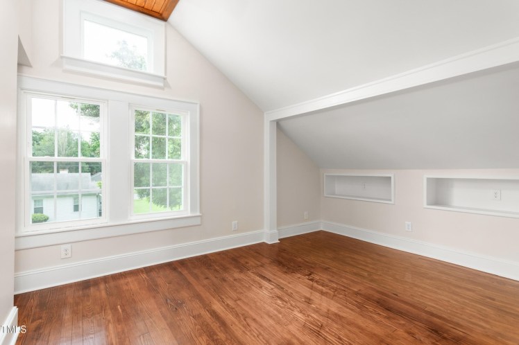 Really strange living room. Equally strange: There are no pictures of the kitchen included in the listing (initially at least). District NR nomination: “Gable Ell House. Two story; asbestos shingle siding; two-over-two, double-hung sash; exposed purlins; hip-roof porch; turned posts; sawn brackets; diamond attic vent.”