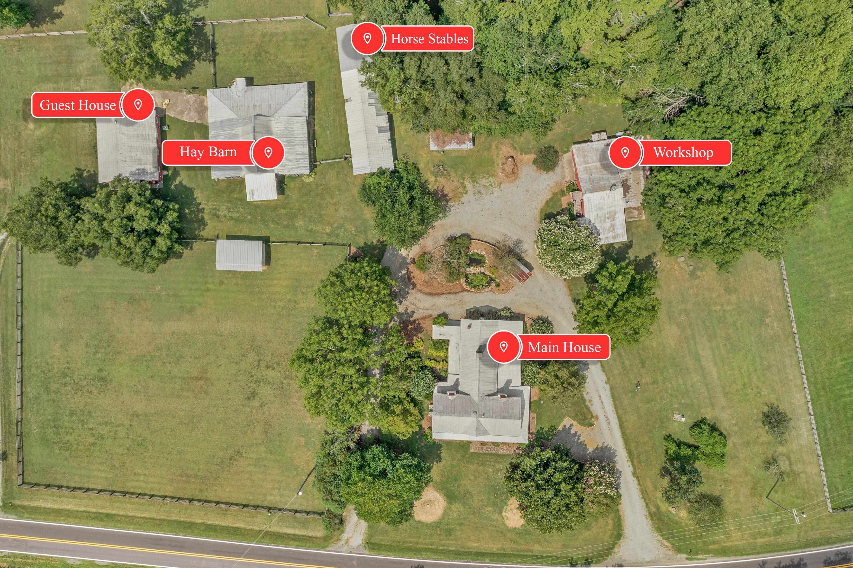 - 4 bedrooms, 3 bathrooms, 3,447 square feet (per county), 17 acres