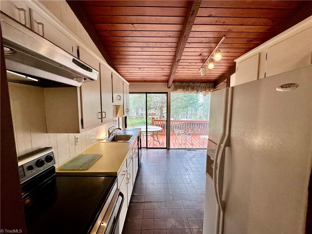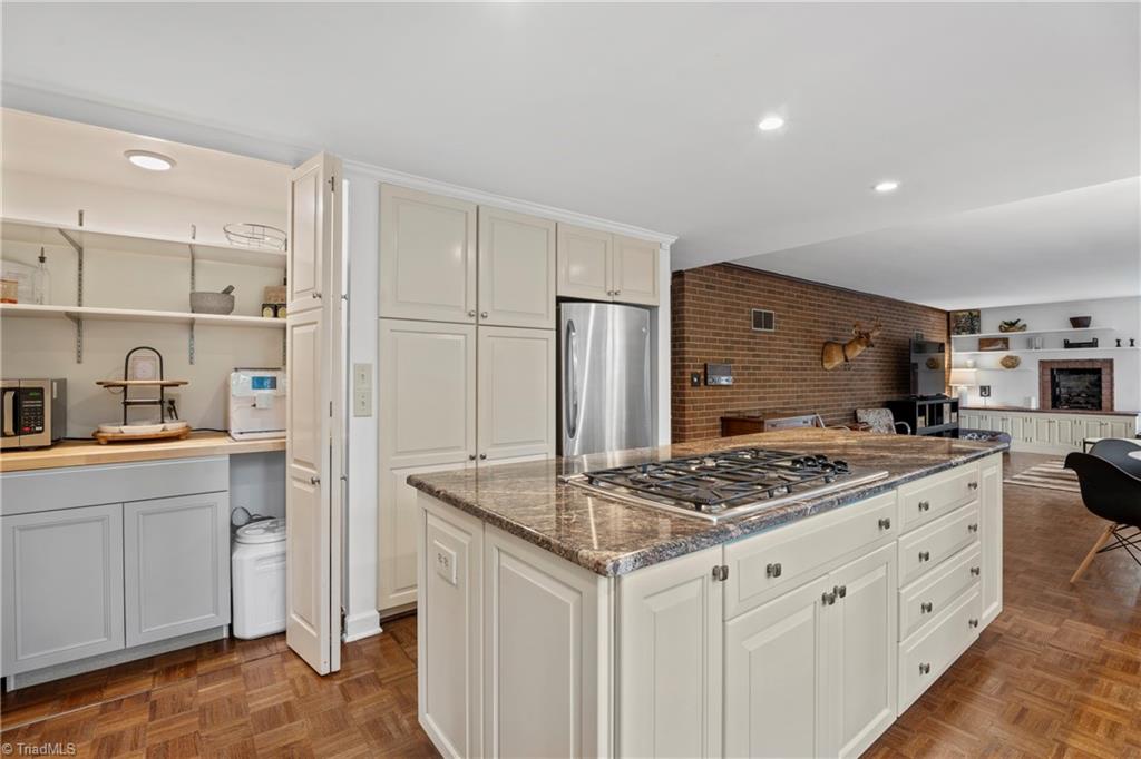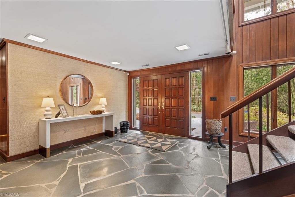 - There’s an attached garage, but, oddly, it was built around an outcrop of granite, which doesn’t allow room for a car.