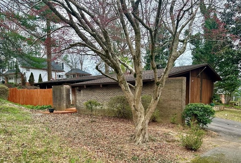- N.C. Modernist: “Designed and built by their son, J. Kenneth Burge [1926-2017], based on classes he took with George Matsumoto at the NCSU School of Design.” Ken Burge was a graduate of Reynolds High School and N.C. State University, with a degree in architectural engineering. He served in the Army in the Philippines during World War II. He joined his father’s firm and established Burge Enterprises; Home Lumber Company, an architectural millwork firm; and BB&L, a holding company. He headed all four companies until he retired in 1989.