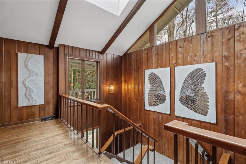 - Note: An unusual octagonal house with an open floor plan upstairs and the lone bedroom downstairs.