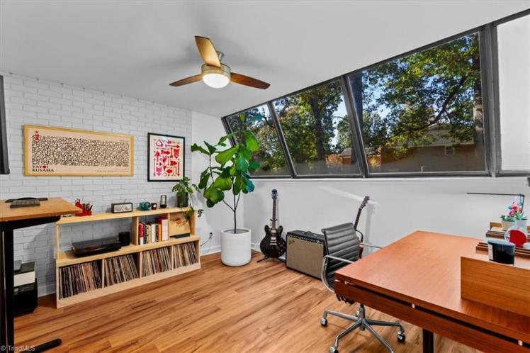 - The house was featured in an article on Northup in the Winston-Salem Journal in 1999 (PDFs here and here): “Burton’s house on Robinhood Road is three stories high in the back, with a lot of glass in the back and the balcony off the living room high off the ground. ‘It’s like living in a tree house,’ Burton said. Upkeep of the 3,400-square foot house has been minimal because of the building materials — wood, iron, tile and brick — and the materials, insulation and shade trees keep the house cool.”
