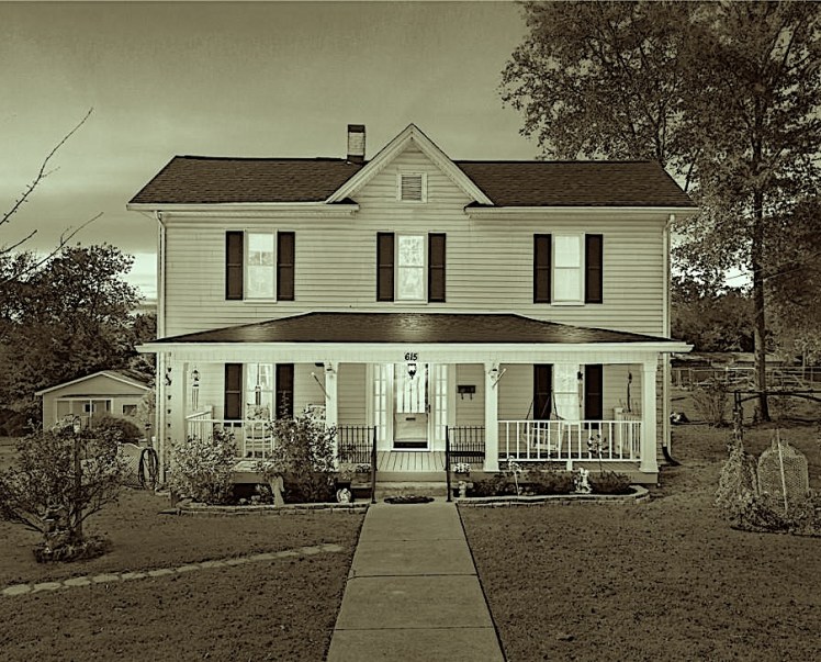 District NR nomination: “Queen Anne I-house. This two-story, two·room·deep, gable-end dwelling apparently was originally erected on the corner lot to its south (now 610 Morehead Avenue) at the opening of the century, its first occupant grocer Matlock. ” In 1949, Woodrow Wilson “Pop” Irwin (1914-1987) and Mary Fredda Darby Irwin (1914-1984) bought the house. It has now been owned by their family for 76 years.