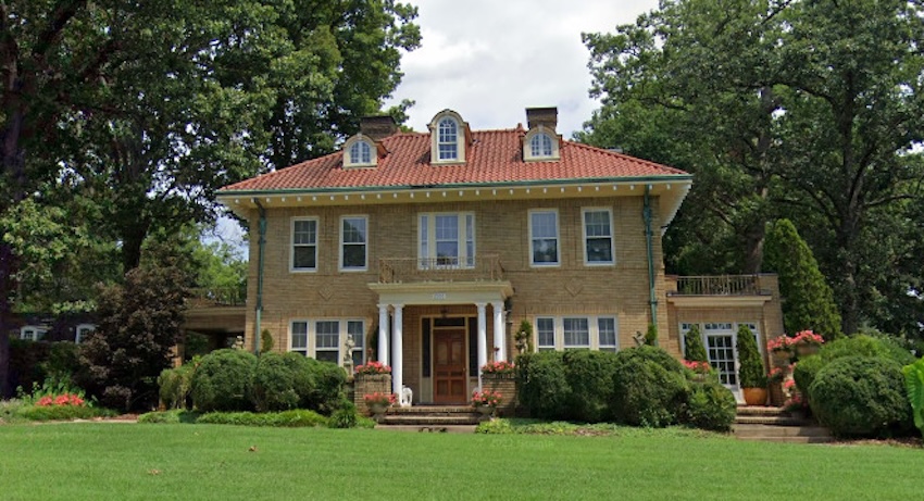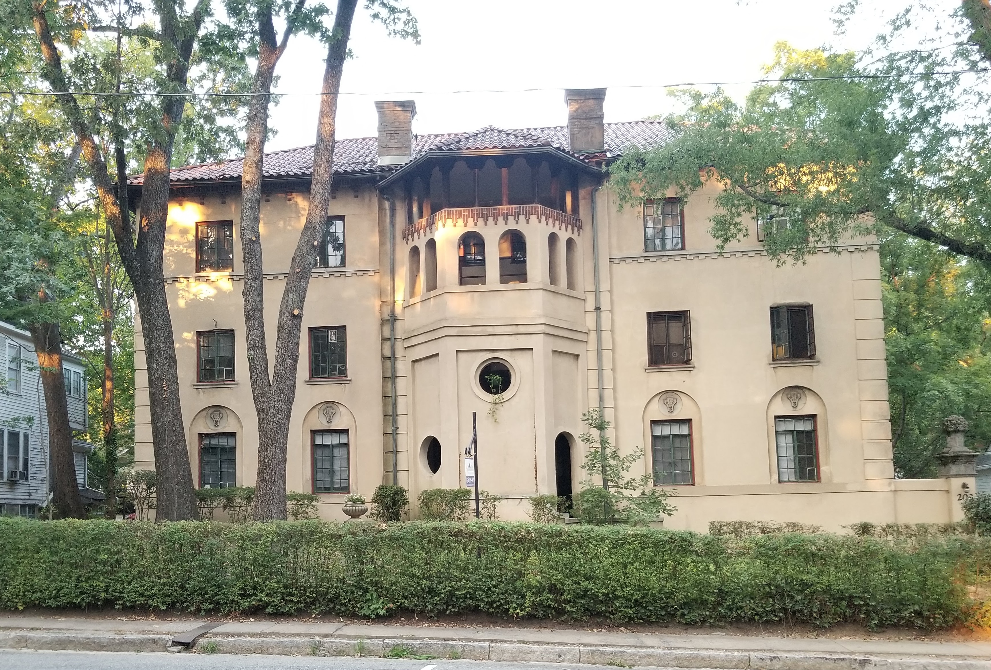 - Note: A remarkably gaudy makeover, with multiple non-historic additions to the exterior, including a new marble walk from the street. It’s amazing that a local preservation commission would allow such a falsification of the house’s appearance (unless the owners had evidence that the home originally looked like this). Photos from the 2022 for-sale listing are here and here.