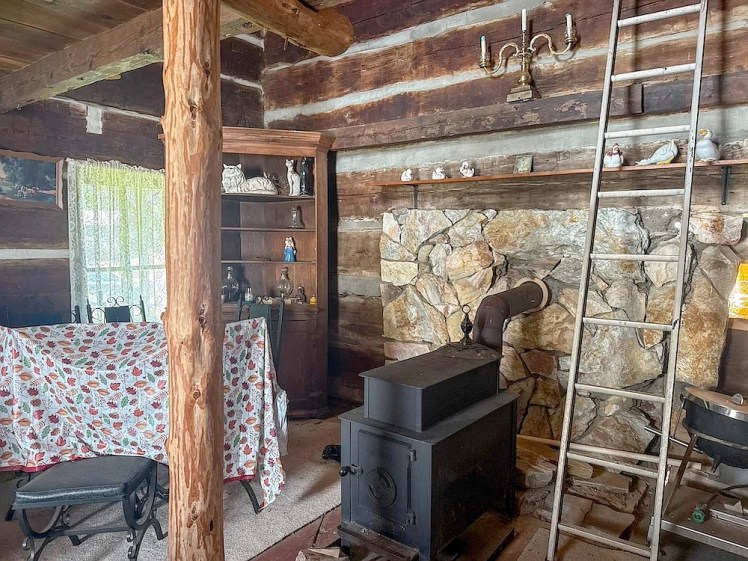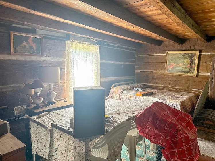 - Note: The listing says the original 1920 log cabin was built from “hand-hewn logs sourced on site.”