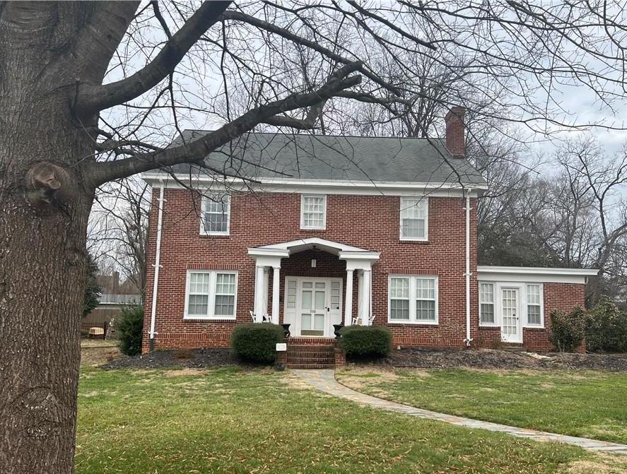 - District NR nomination: “Two-story side-gable-roofed Colonial Revival with a full-height portico supported by square posts; 4/1 sash, brick end chimney, one-story wing with large picture window on east side, rear shed addition, vinyl siding on façade, weatherboards on other elevations.